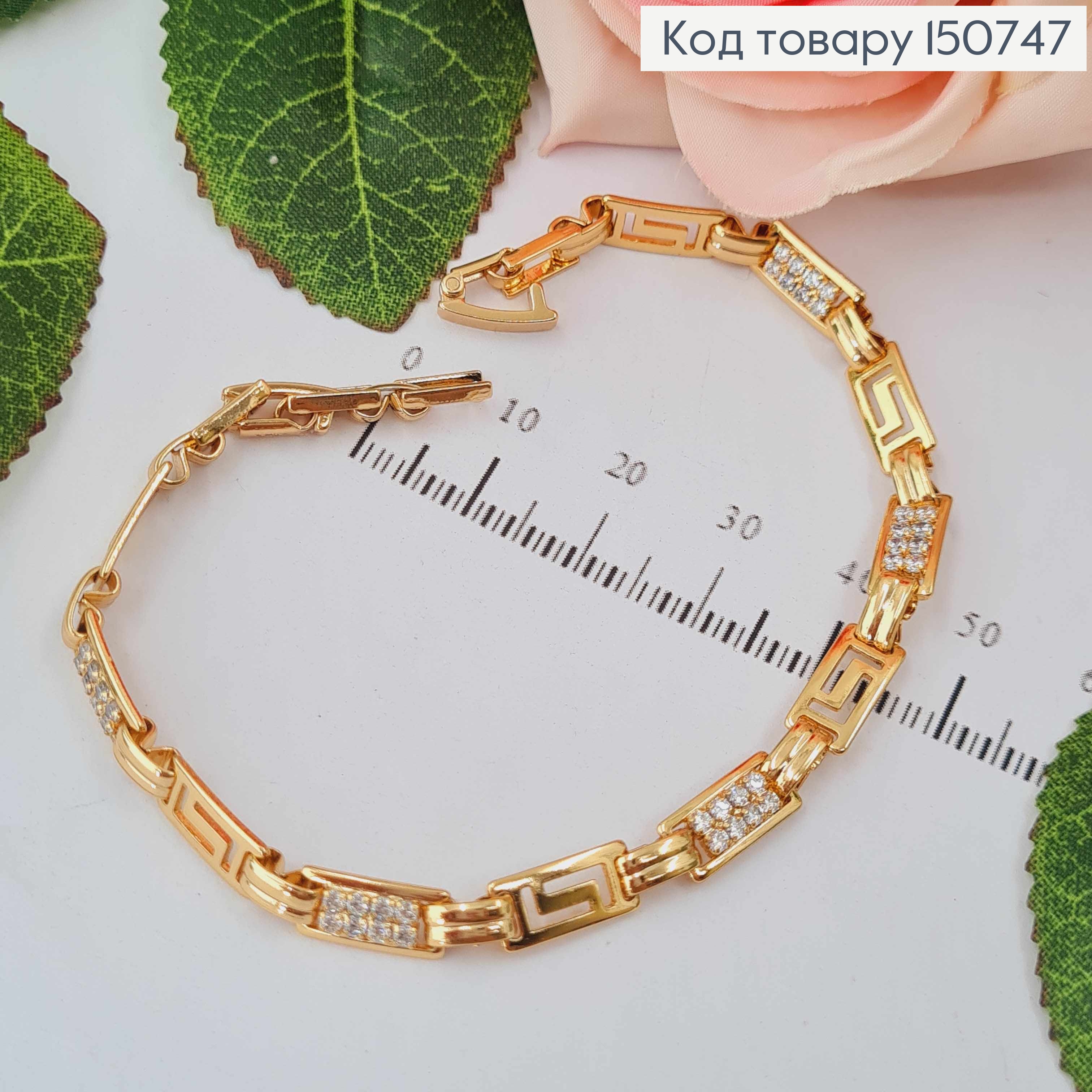 Браслет из овальных пластин украшен блестящими камешками, длина 17+2,5см, Xuping 18К. 151288 фото