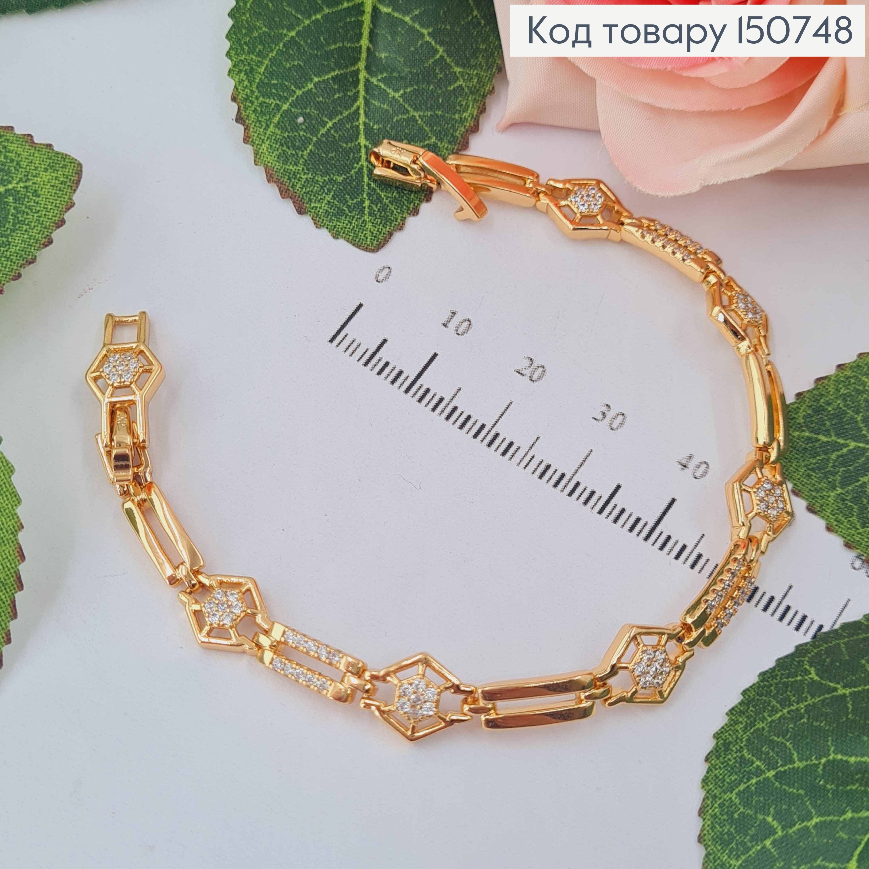Браслет плетения фигурными пластинками в Блестящих камнях, длина 17+2см, Xuping 18K 151293 фото
