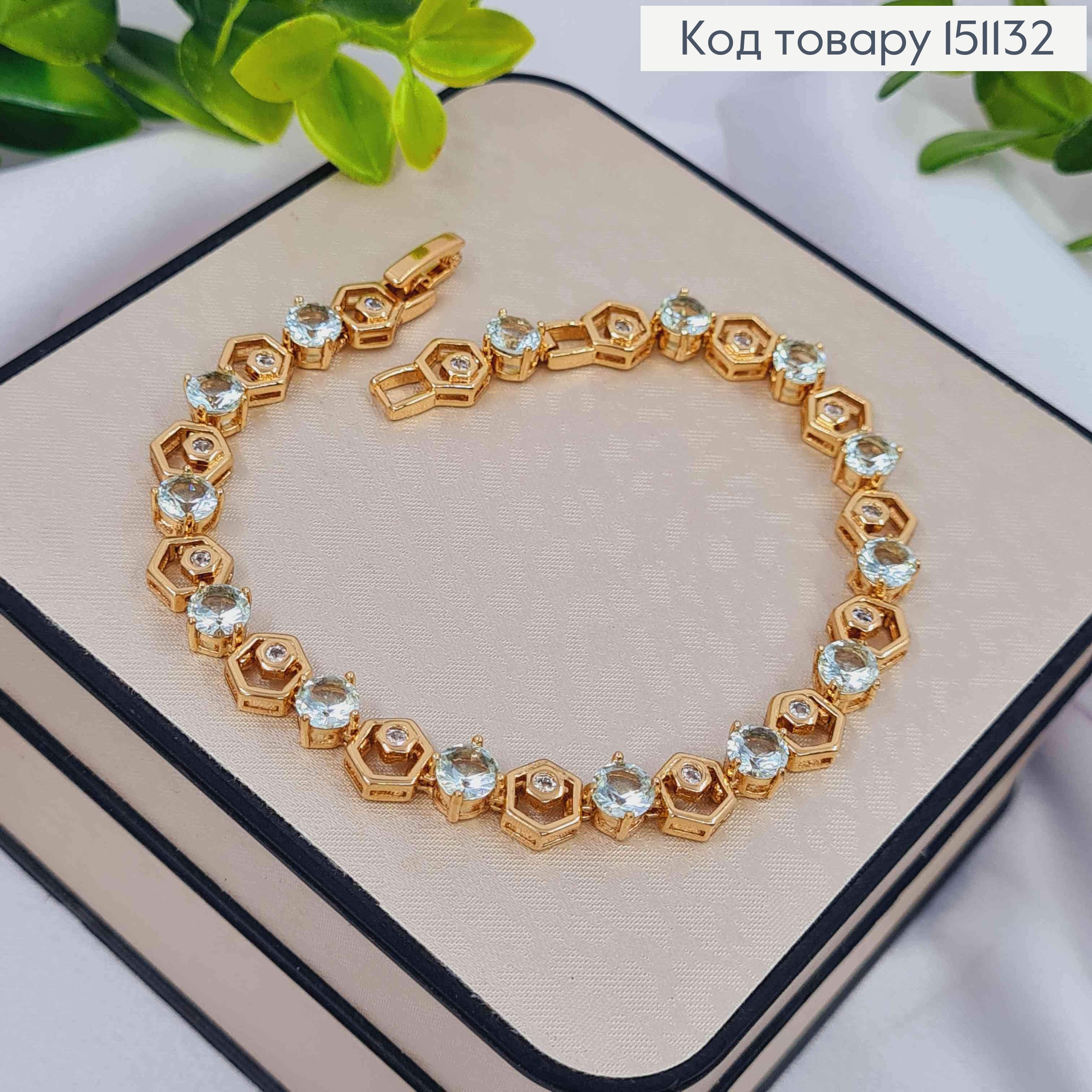 Браслет плетения шестиугольниками с Нежно-Голубыми камешками, дл. 20см, Xuping 18K