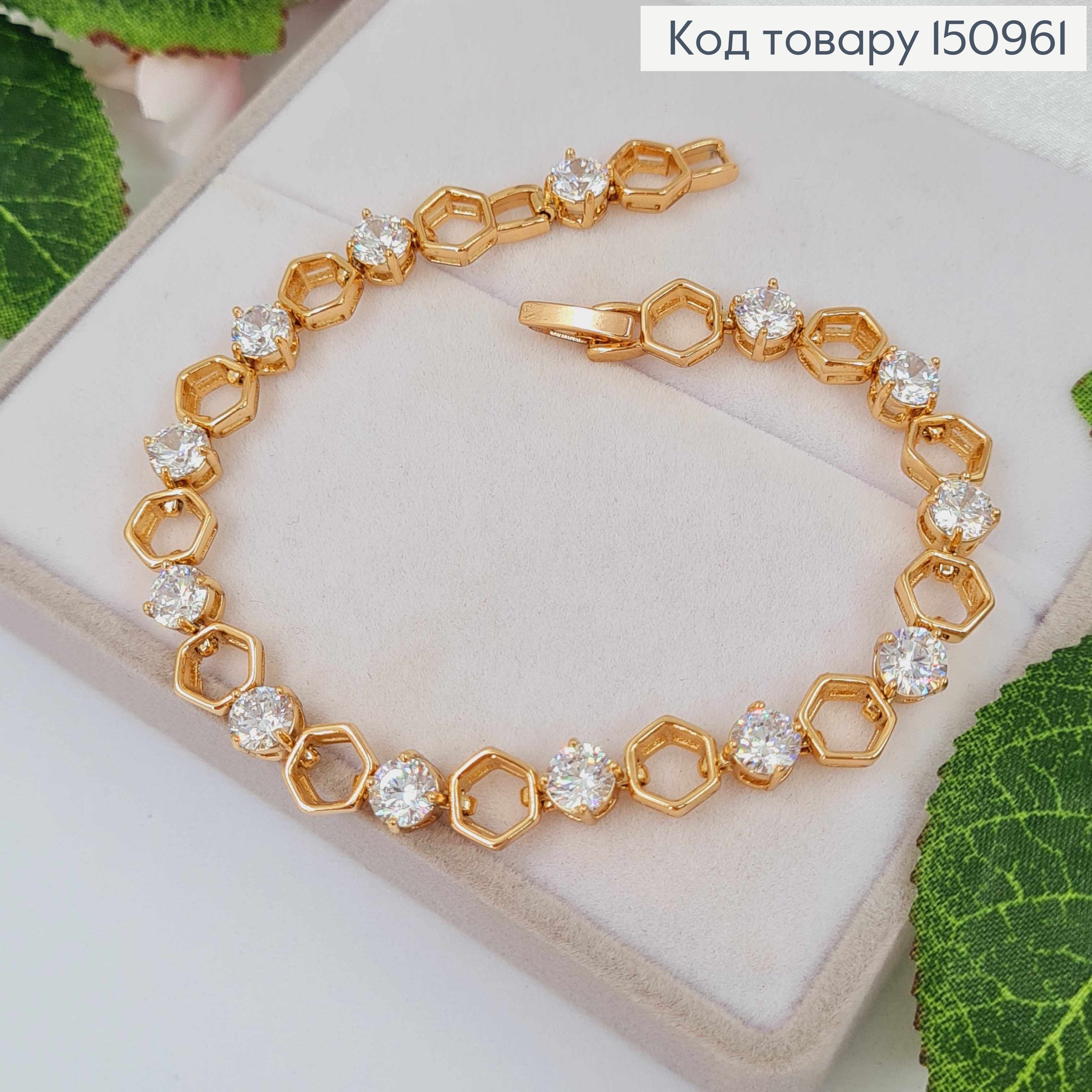 Браслет плетения шестиугольники с Белыми блестящими камешками 19,5см, Xuping 18K.