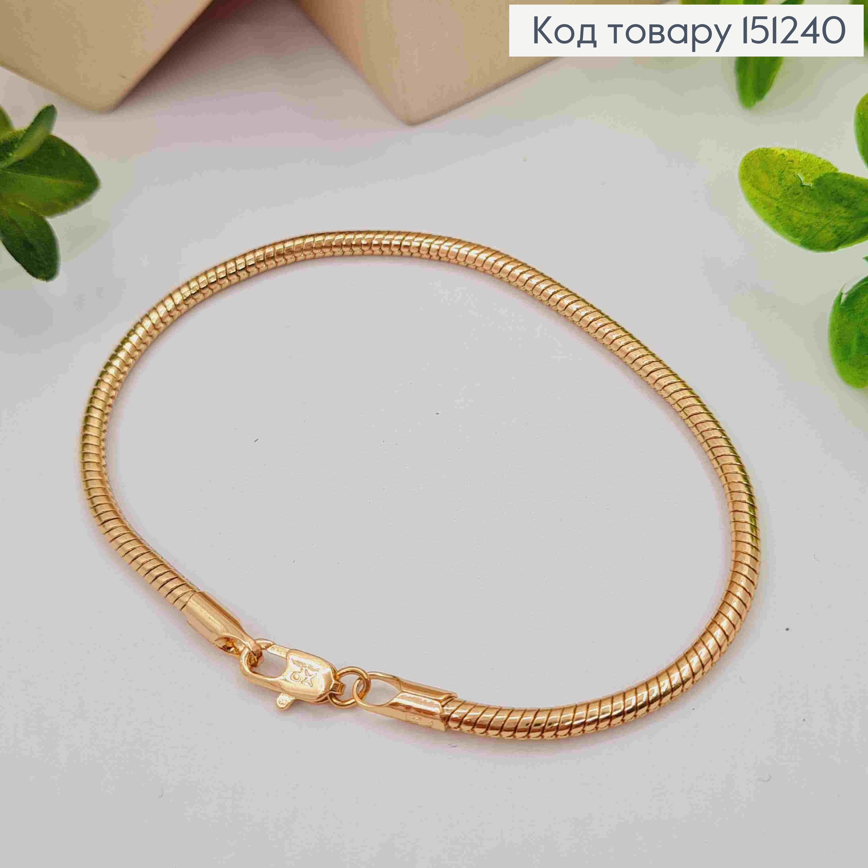 Браслет плетения СНЕЙК, ширина 2,5мм, длина 18см, Xuping 18K