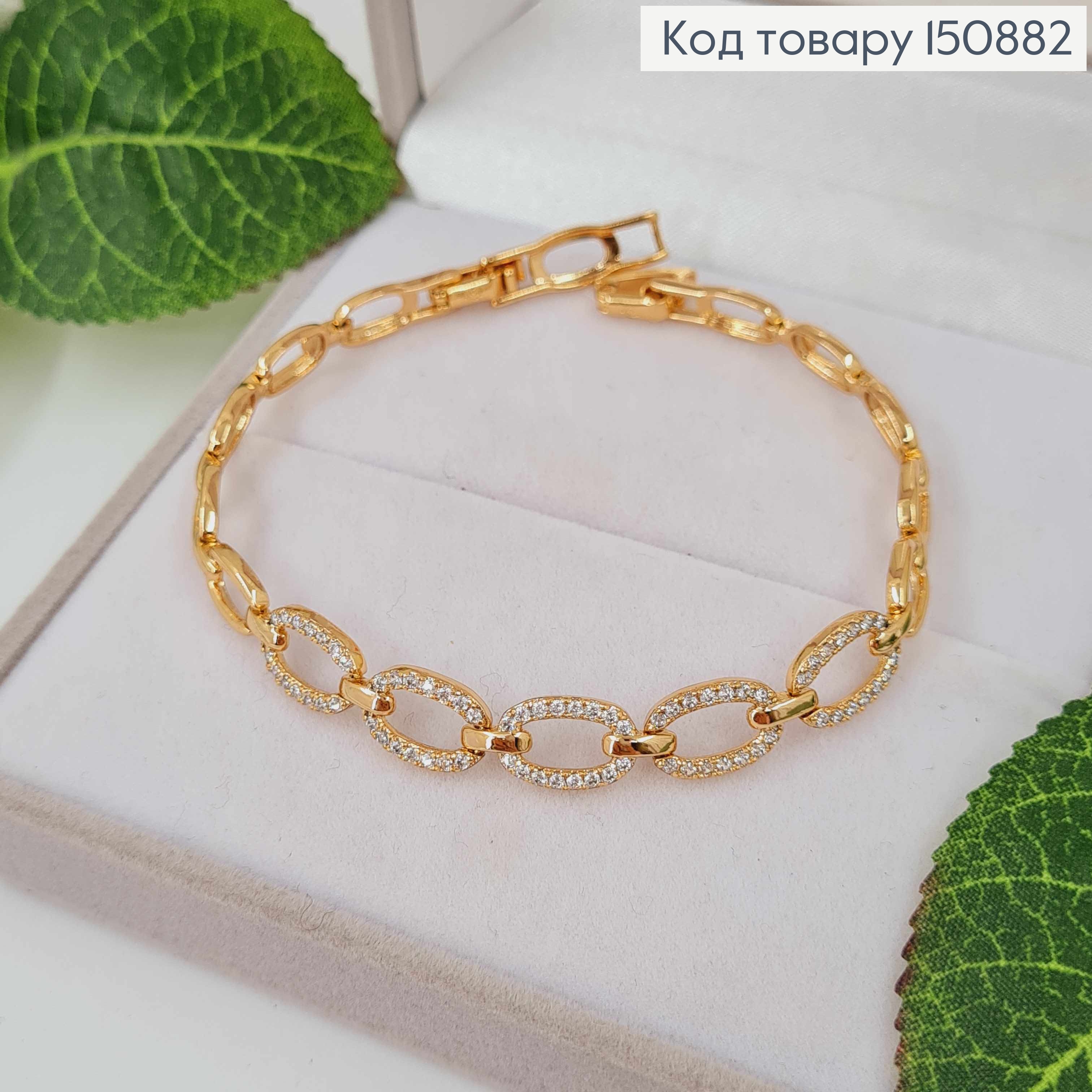 Браслет из овальных пластин украшен блестящими камешками, длина 17+2,5см, Xuping 18К. 151288 фото