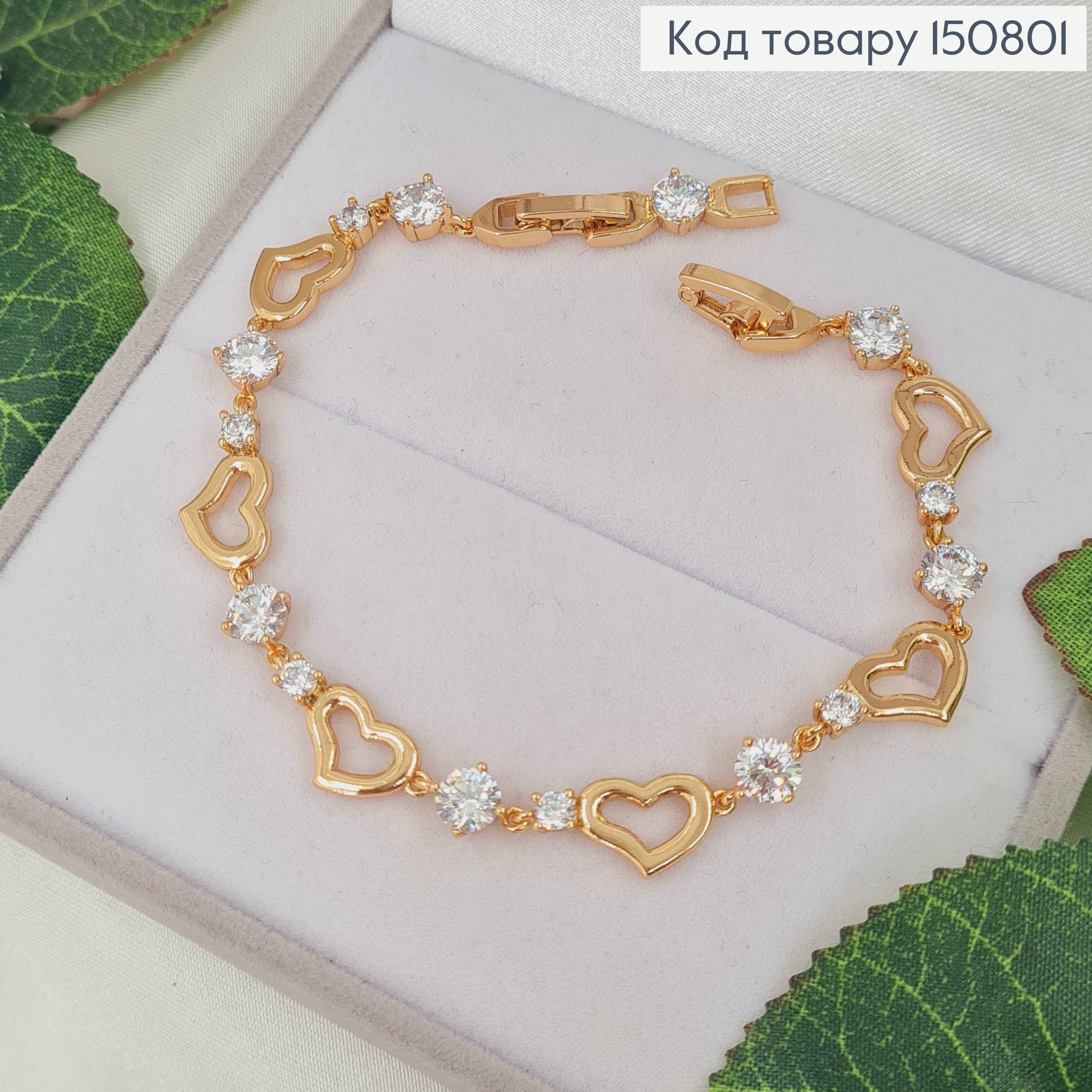 Браслет, плетение с сердечками и камешками, дл. 17+2см. Xuping 18K