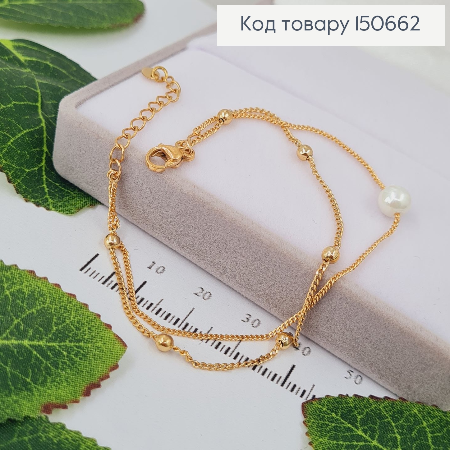 Браслет двойной с шариками и жемчужиной, 14+5см, Xuping 18К
