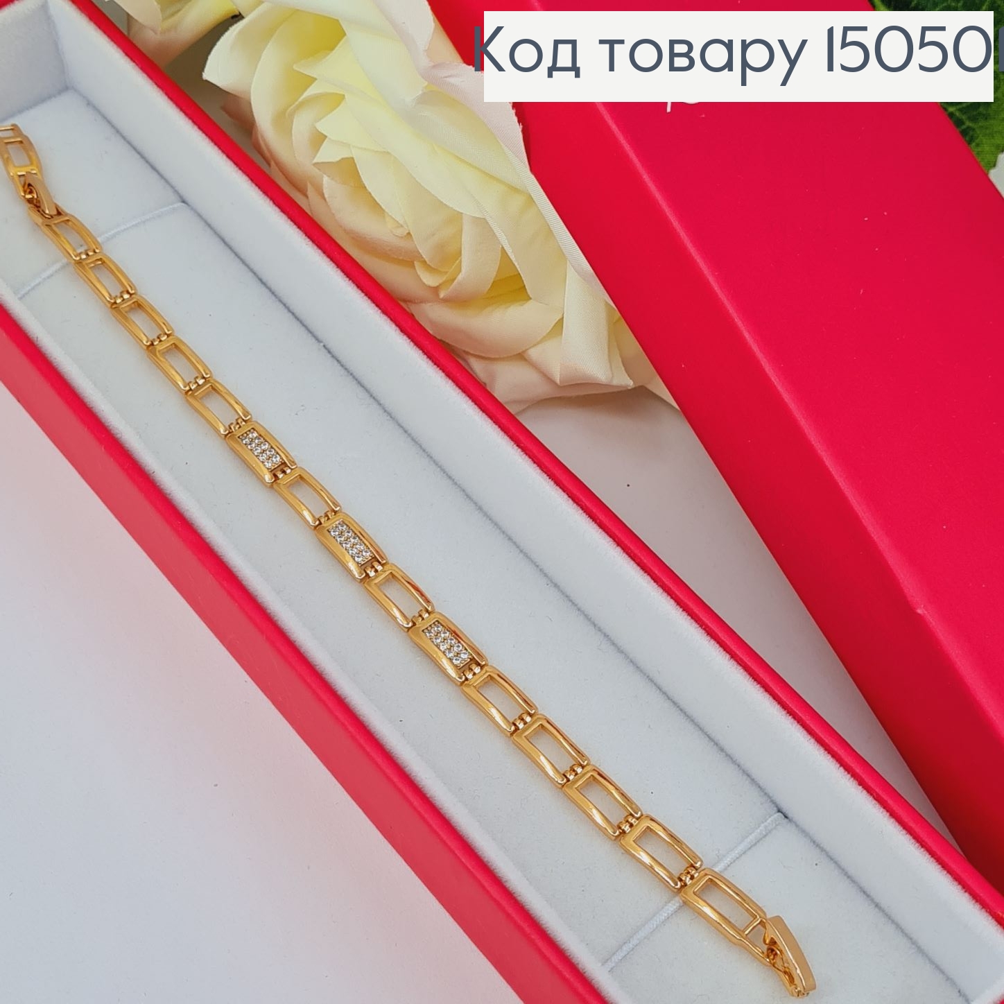 Браслет плетения фигурными пластинками в Блестящих камнях, длина 17+2см, Xuping 18K 151293 фото