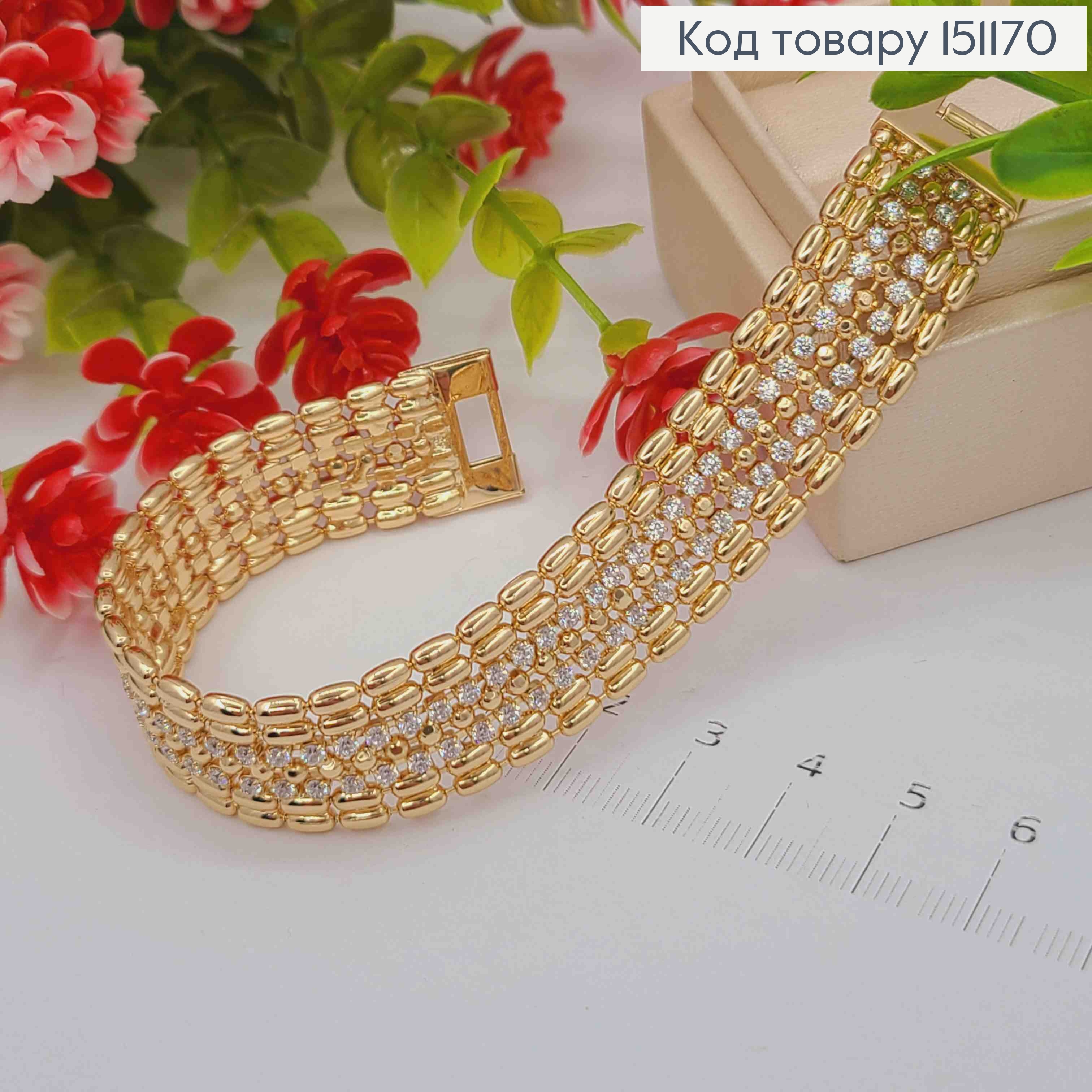 Браслет плетения фигурными пластинками в Блестящих камнях, длина 17+2см, Xuping 18K 151293 фото
