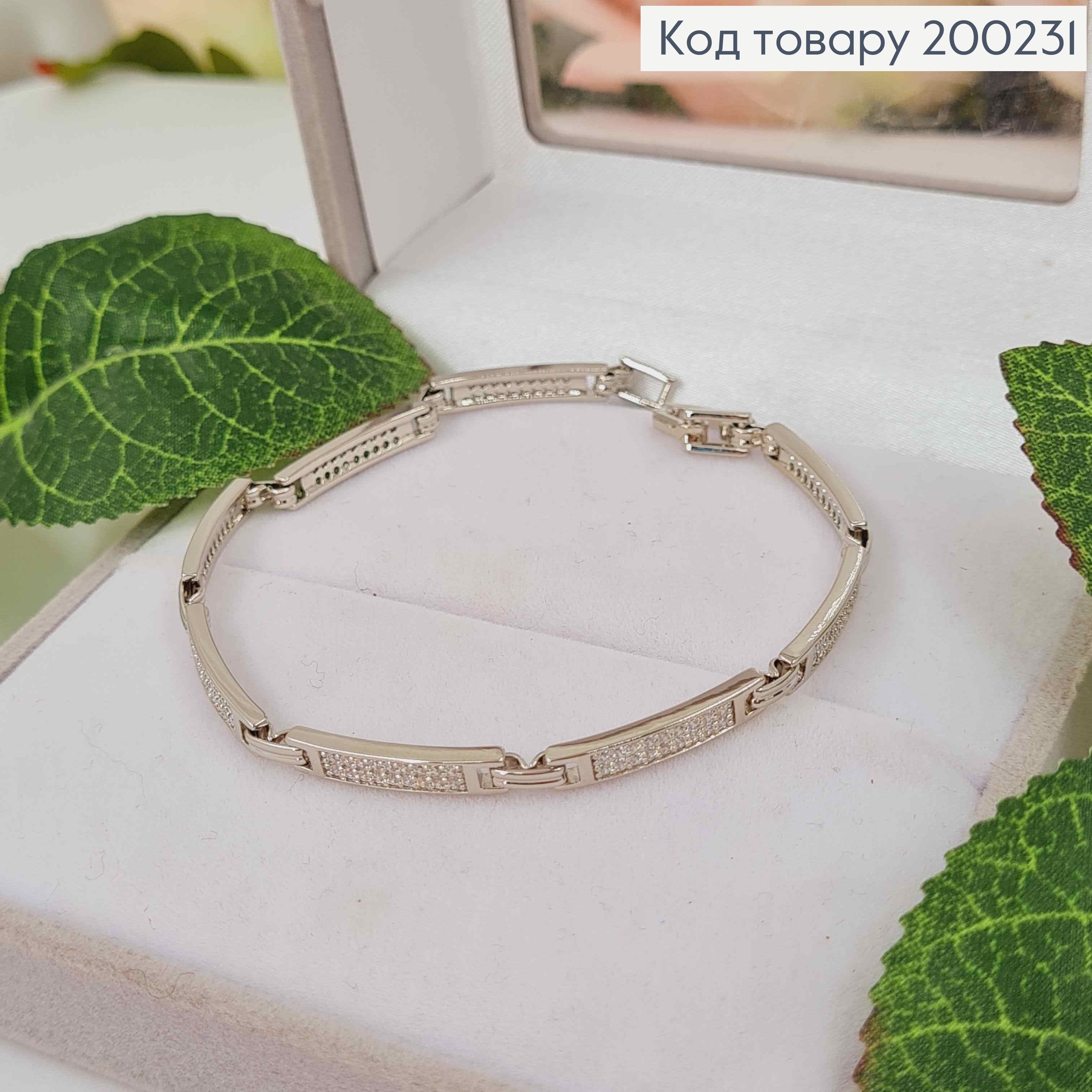 Браслет родованных плетіння прямыми пластинами с блестящими камнями, длина 17+2см, Xuping 200352 фото