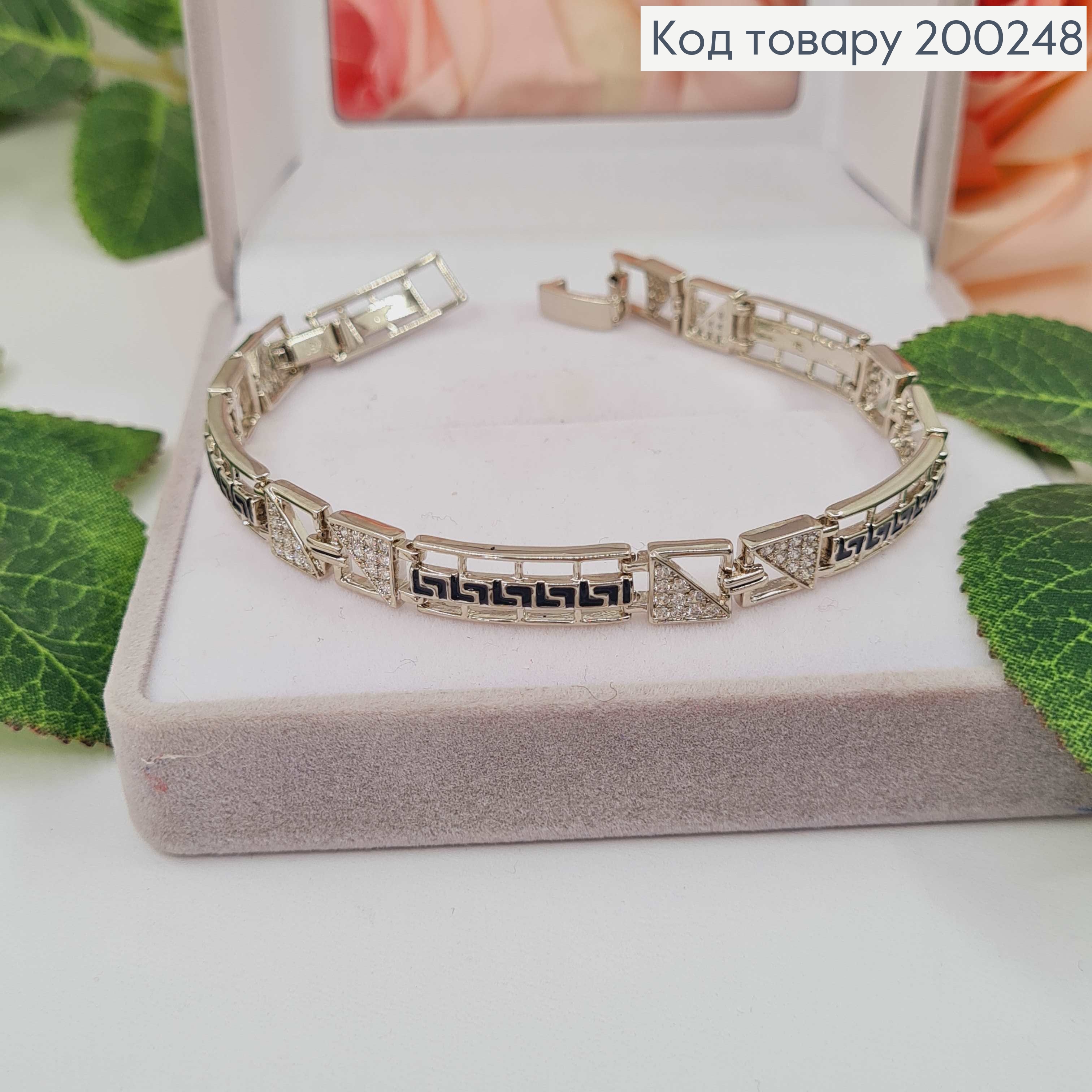 Браслет родованный, Пластинки "Версаче" с черной эмалью, дл. 17,5+2см, шир.7мм, Xuping