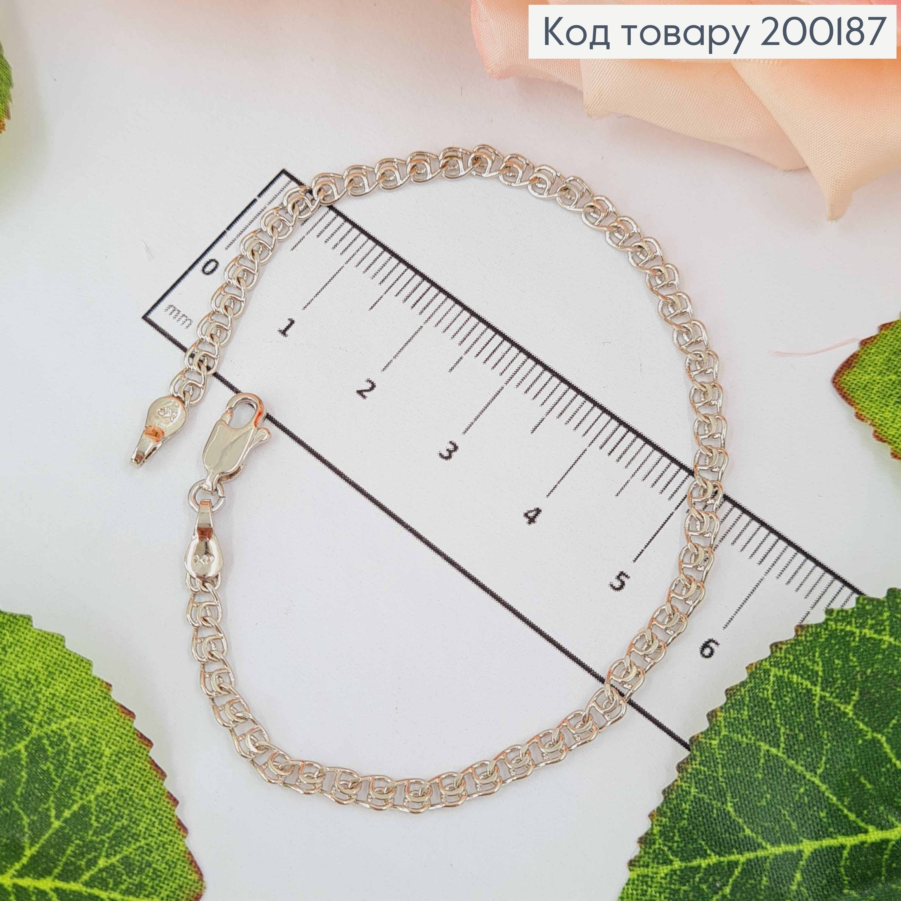 Браслет родованный, плетение двойной Лав, шир. 2,5мм, дл. 18см, Xuping 18K