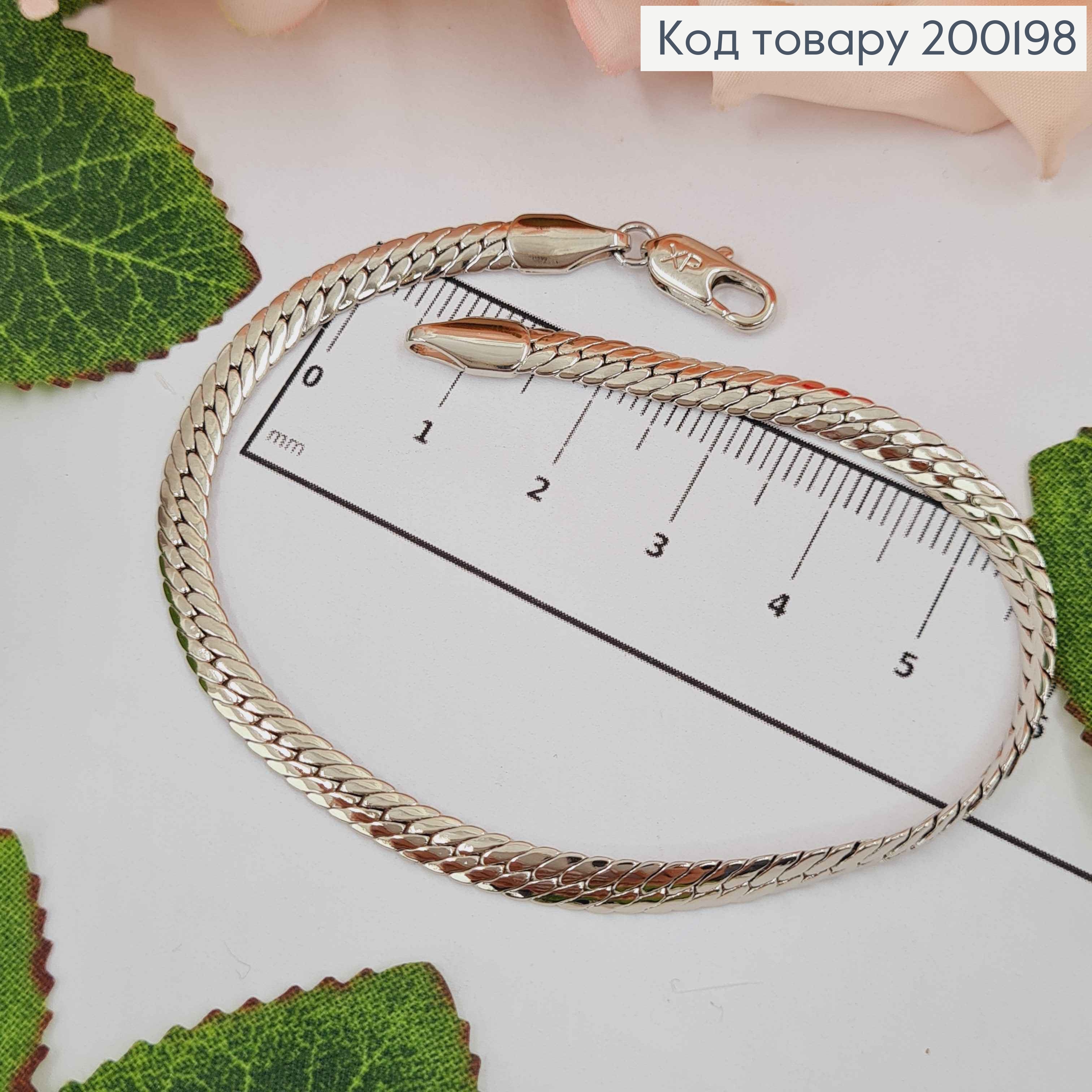 Браслет родованный, плоское плетение, шир. 4мм, дл. 20см, Xuping 18K