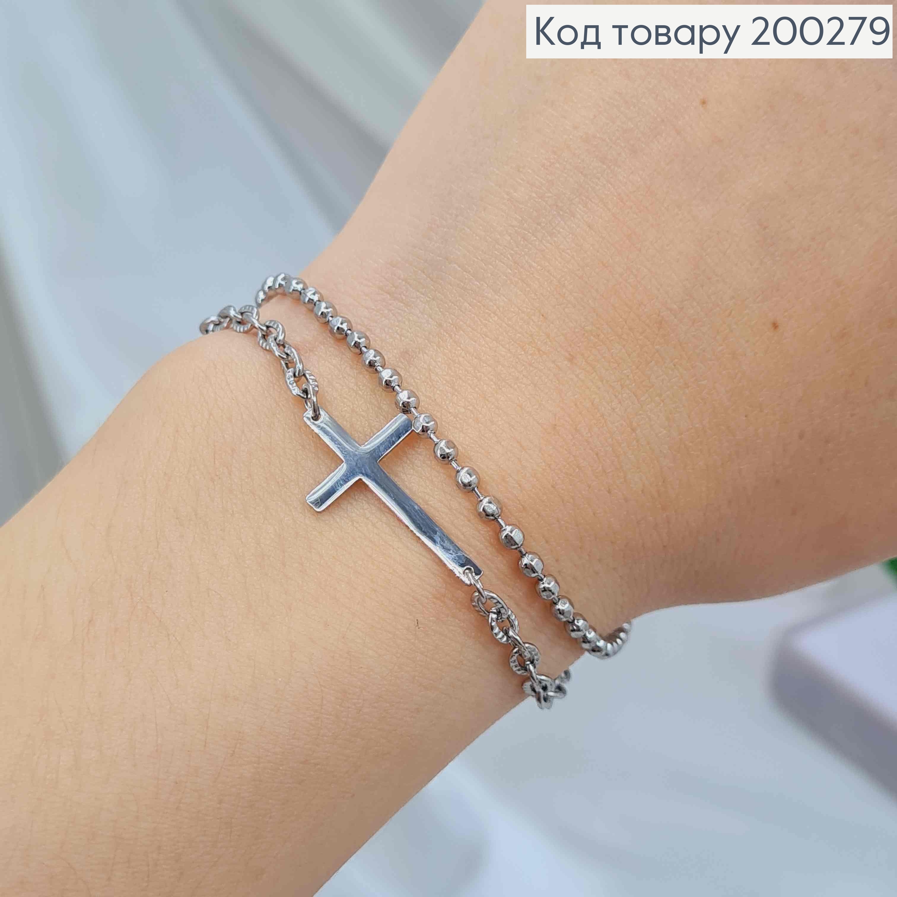 Браслет двойной родовой с подвеской Крест (2,4*1,2см), 16+3см, Xuping ТТМ
