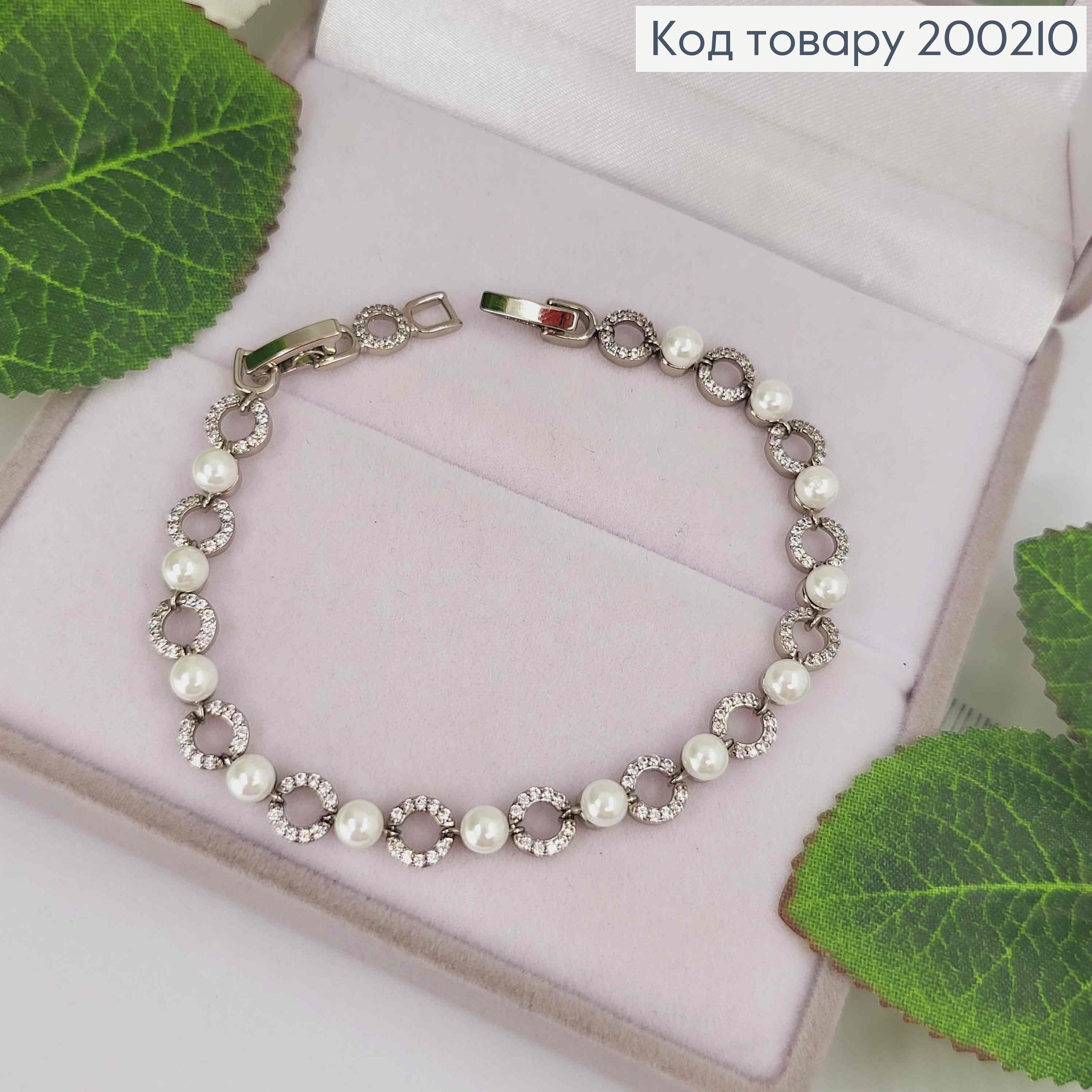 Браслет родованный в камнях и с жемчужинами, длина 16+2см, Xuping