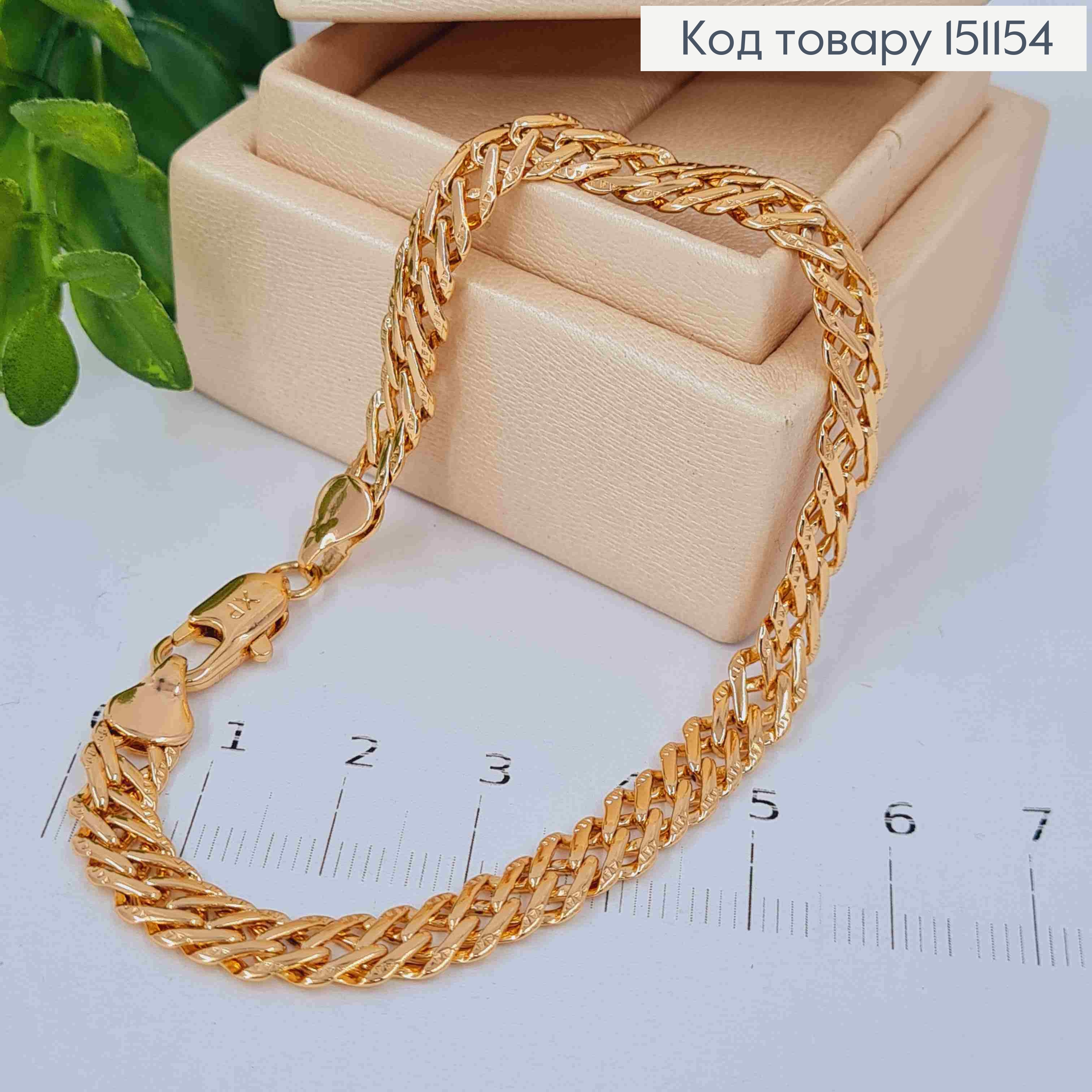 Браслет РОМБОВЫЕ двойное плетение с тиснением по краям, ширина 6мм, длина 19см, Xuping 18К