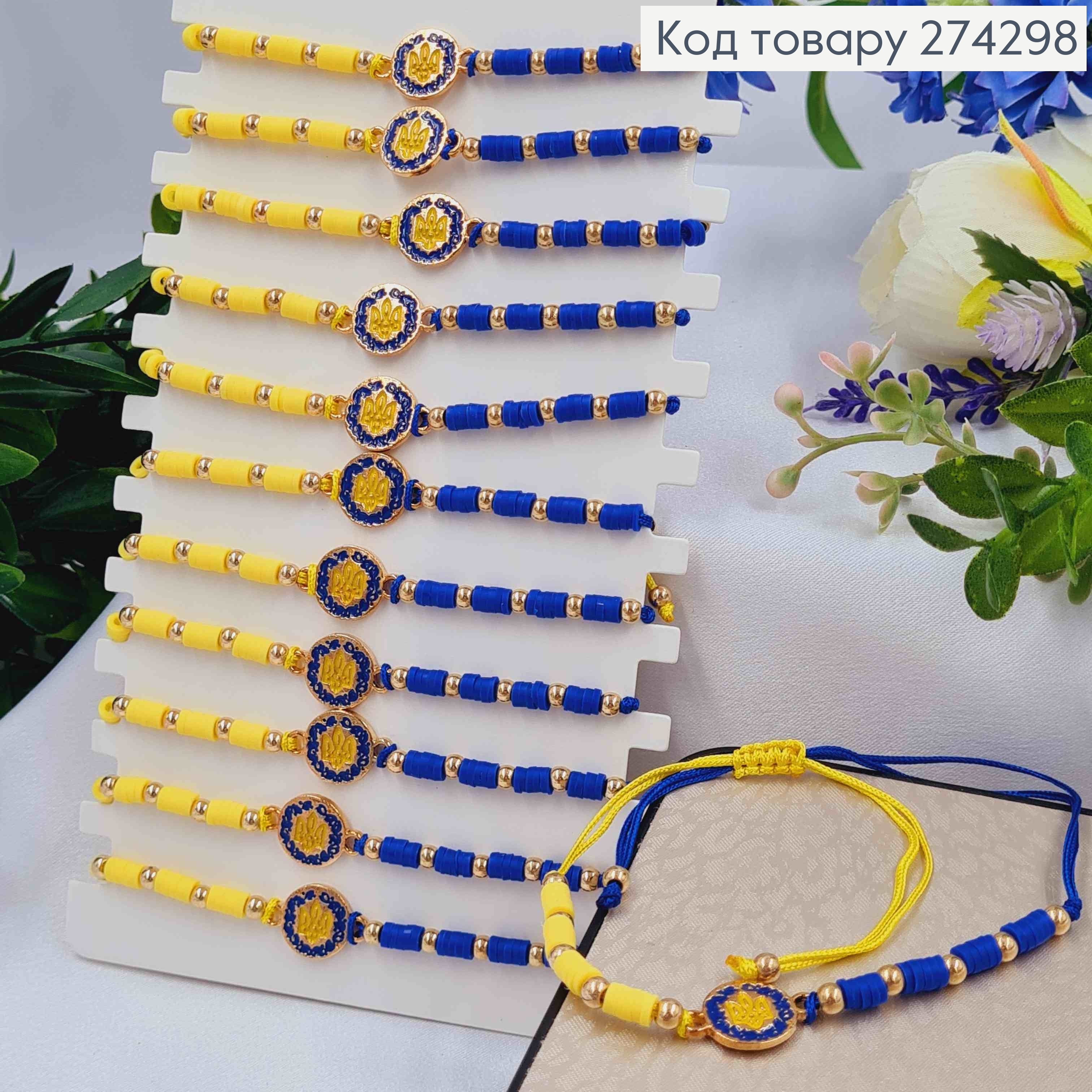 Браслет сине-желтый, с бусинками и Гербом Украины в круглой монетке, на затяжке