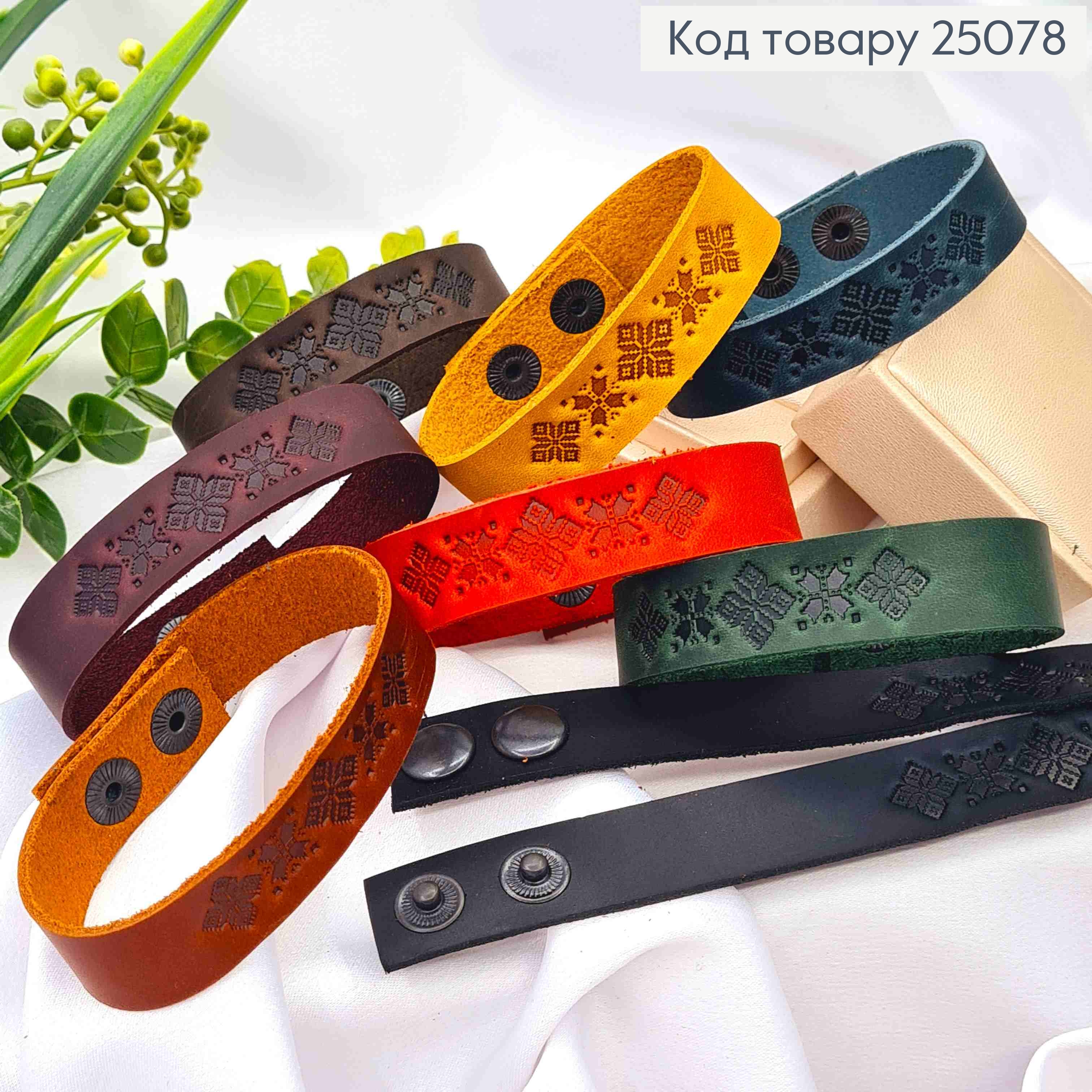 Браслет кожаный с орнаментом, с регуляцией размера, 17,19,21см, ручная работа, Украина.