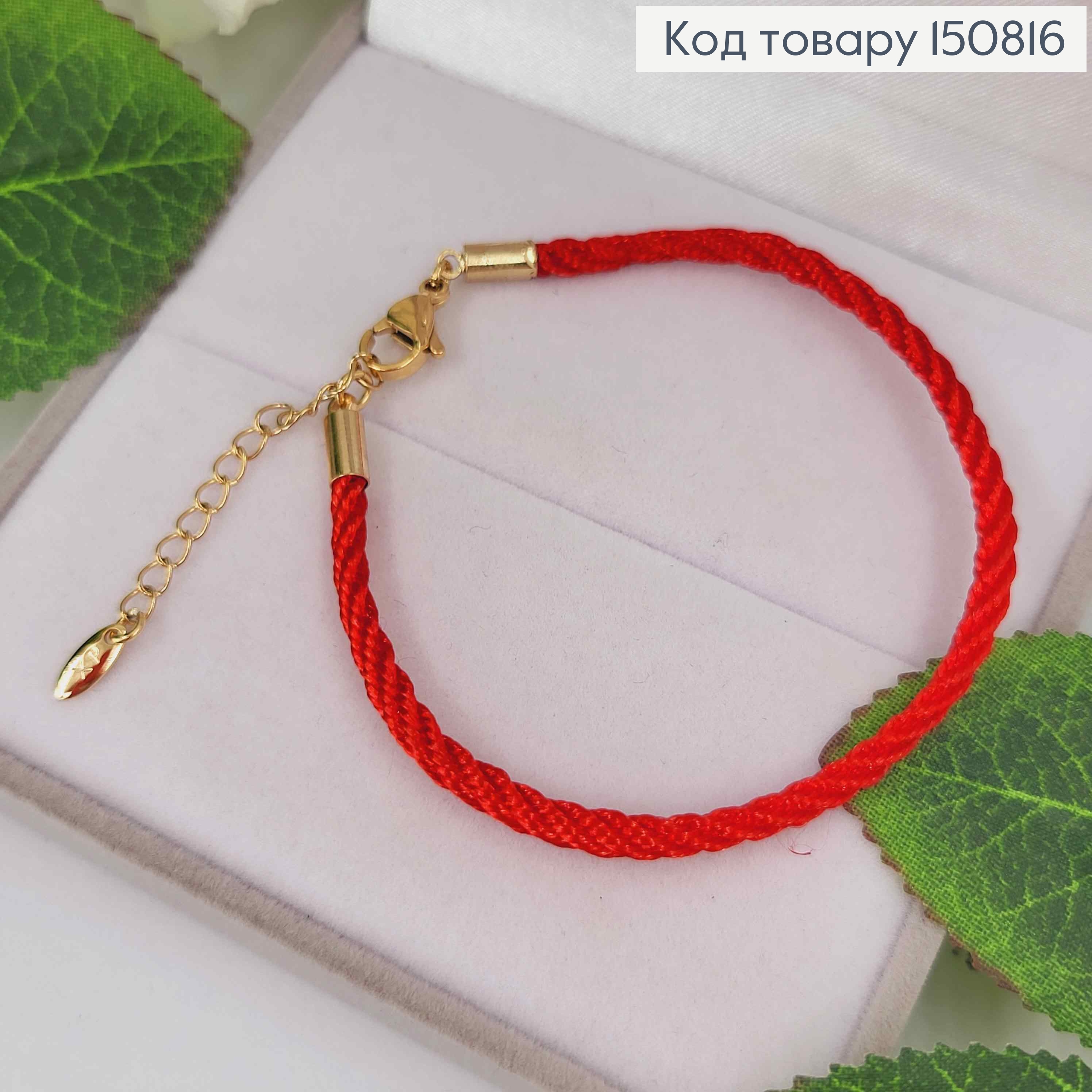Браслет красный шнур, шир. 3мм, длина 17+3см