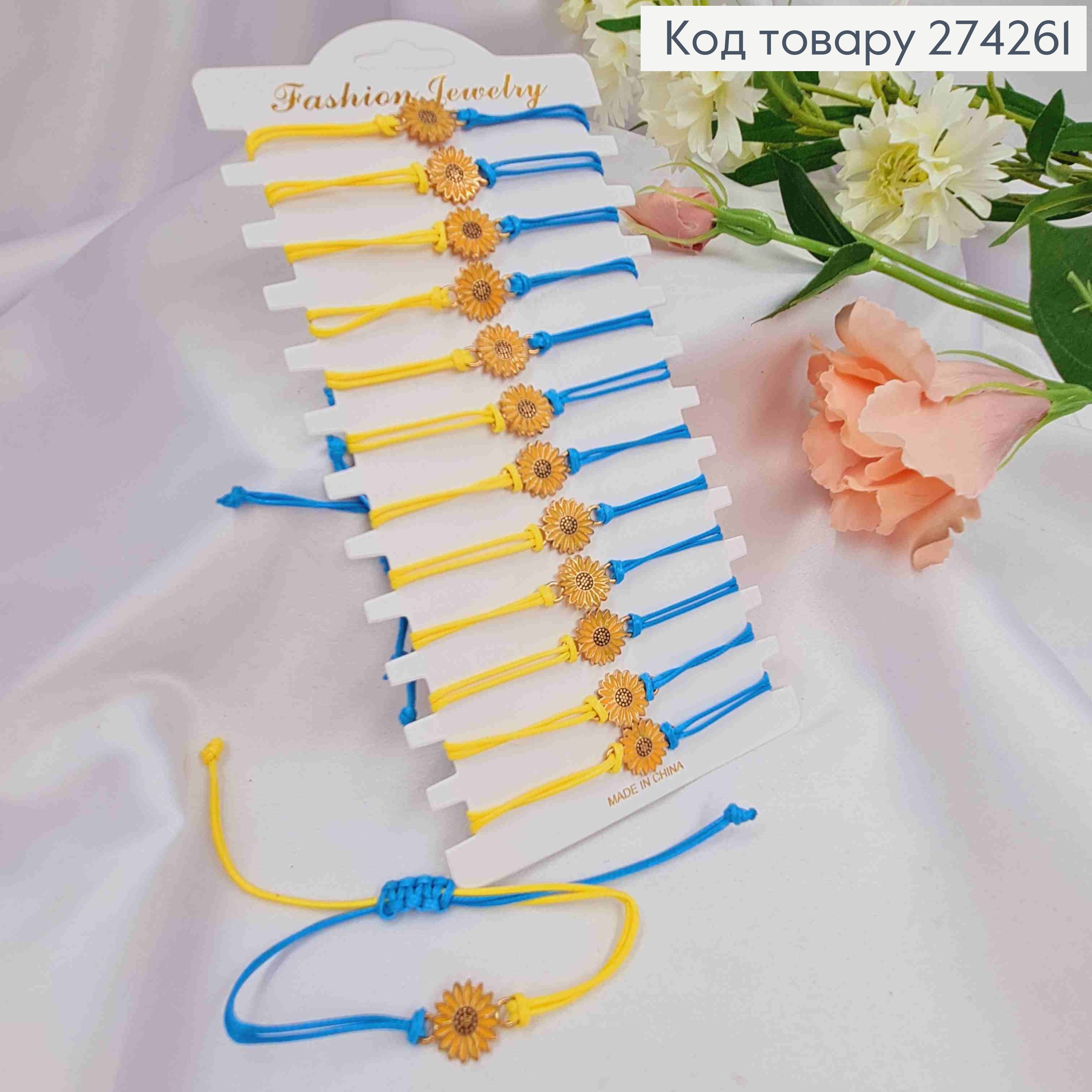 Браслет плетеный, сине-желтый, СЕРДЕЦКО УКРАИНА, на затяжке 274404 фото
