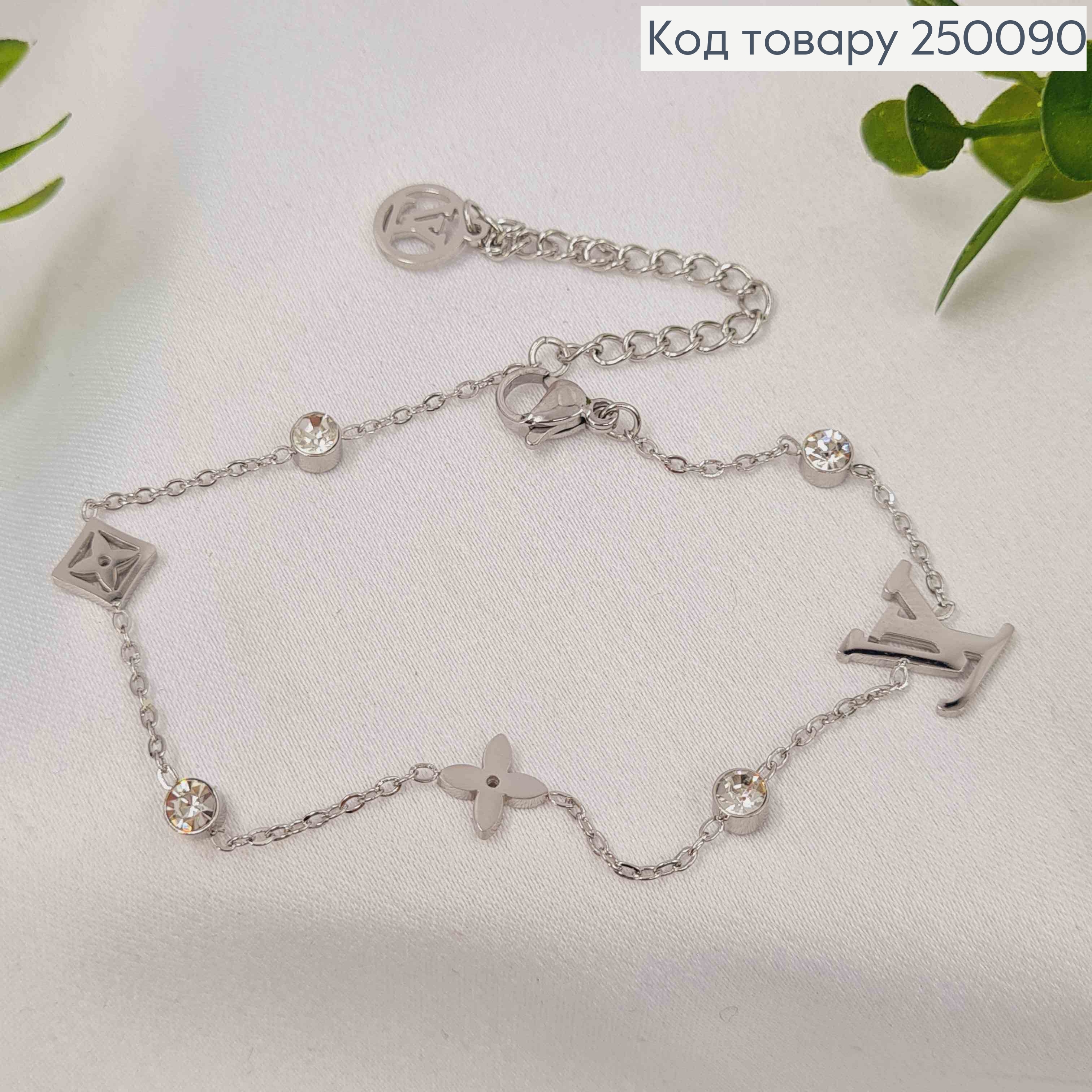 Браслет серебряного цвета, Louis Vuitton с Блестящими камешками, 17,5+5см, сталь Stainless Steel