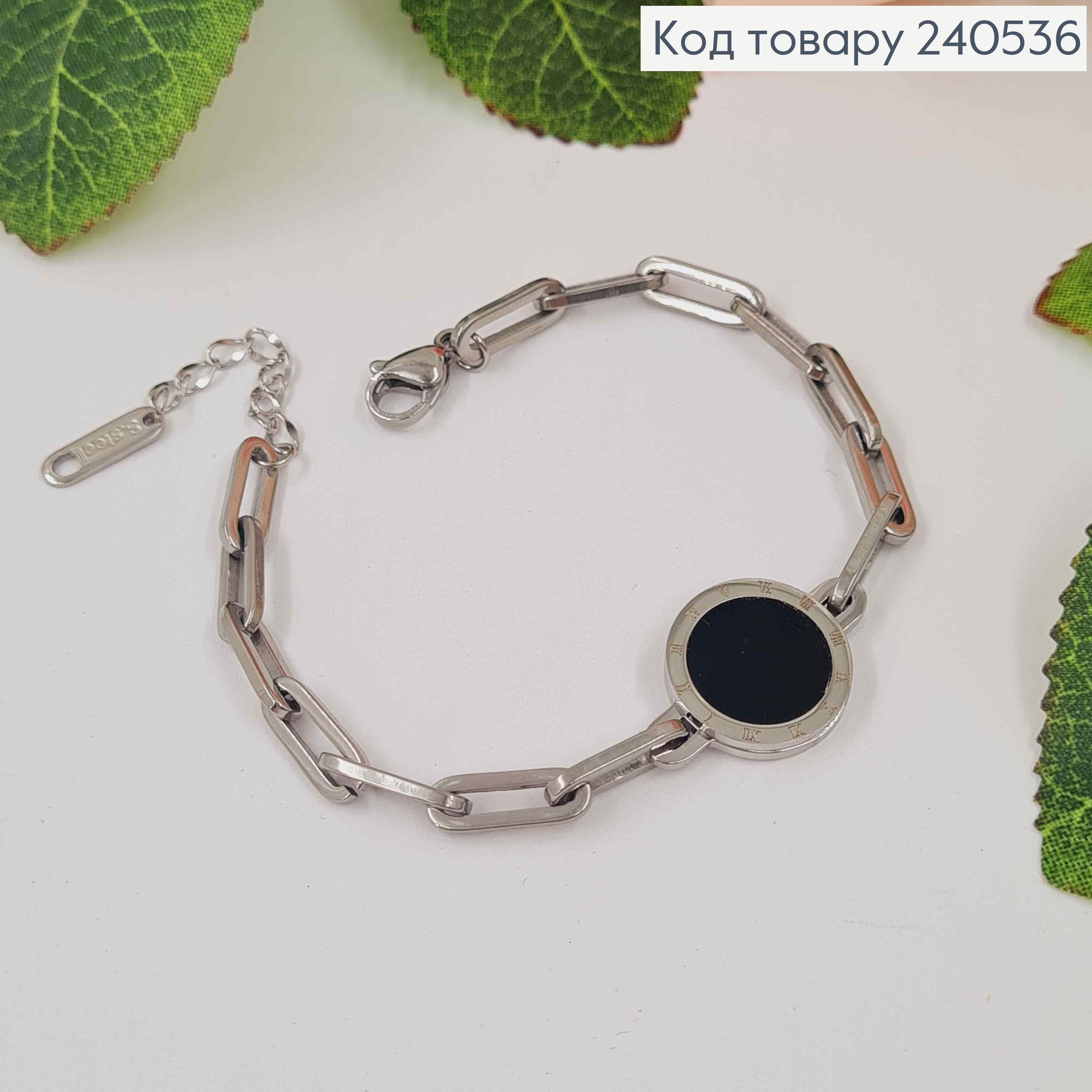 Браслет серебряного цвета, с пластинкой Римские часы с черной эмалью, 20см сталь Stainless Steel