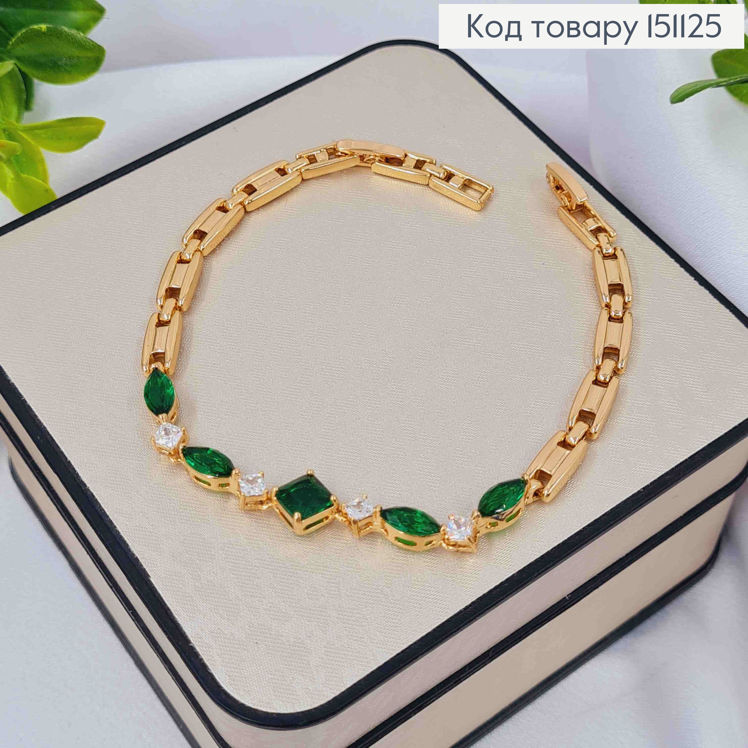 Браслет "РАССВЕТ" украшен Зелеными камнями, дл. 17+2см, Xuping 18K
