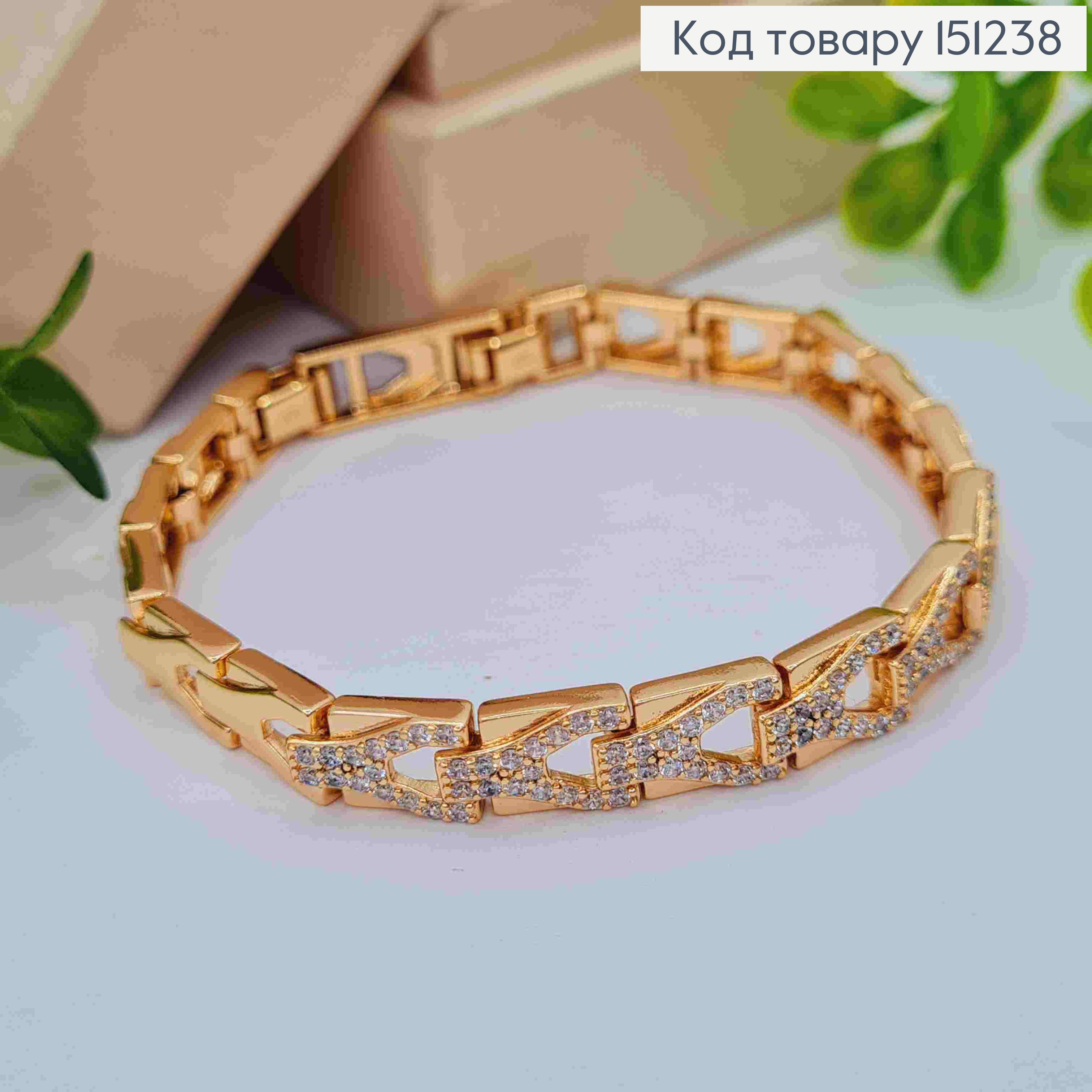 Браслет плетения фигурными пластинками в Блестящих камнях, длина 17+2см, Xuping 18K 151293 фото