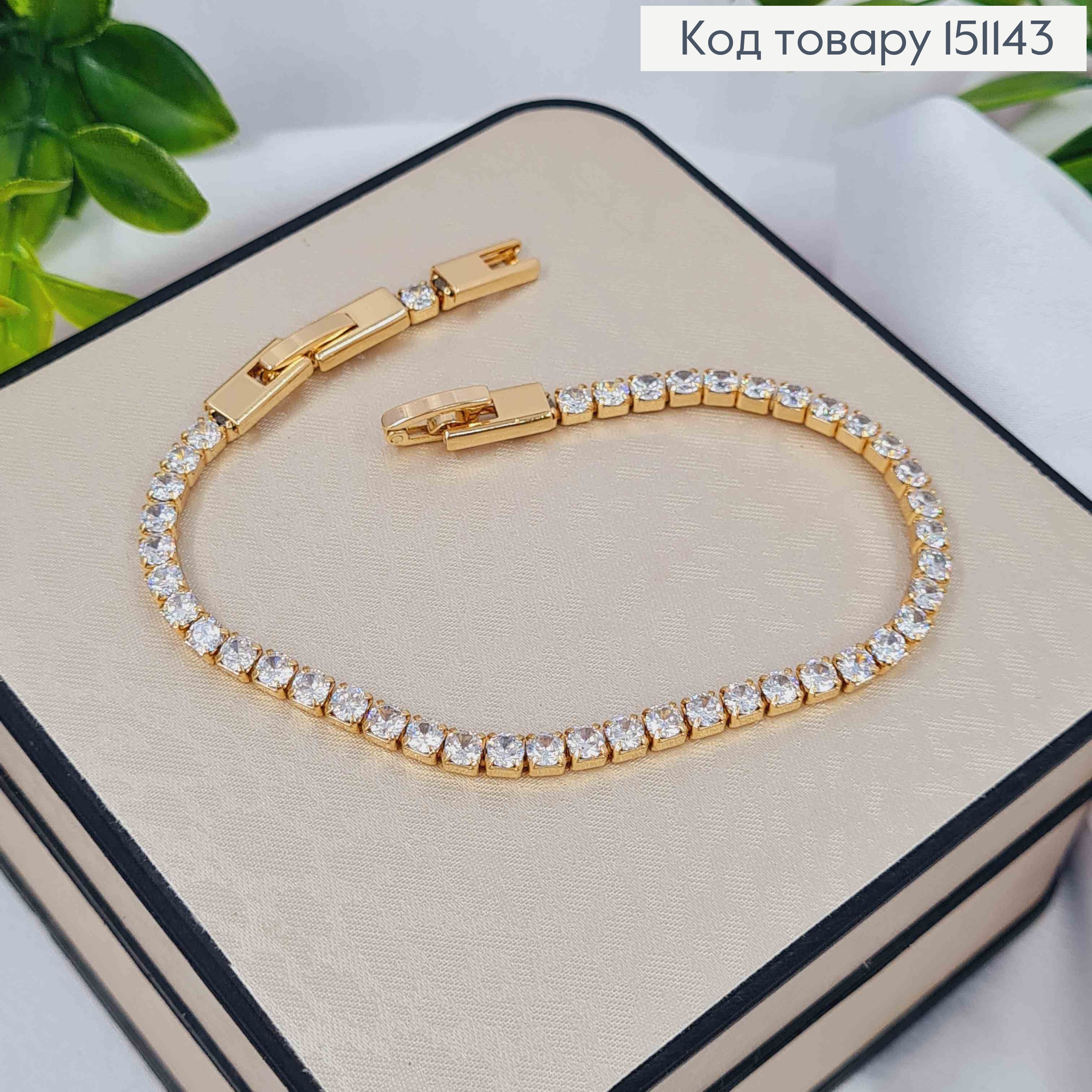 Браслет из блестящих камней в один ряд, ширина 3мм, дл. 17+2см, Xuping 18K