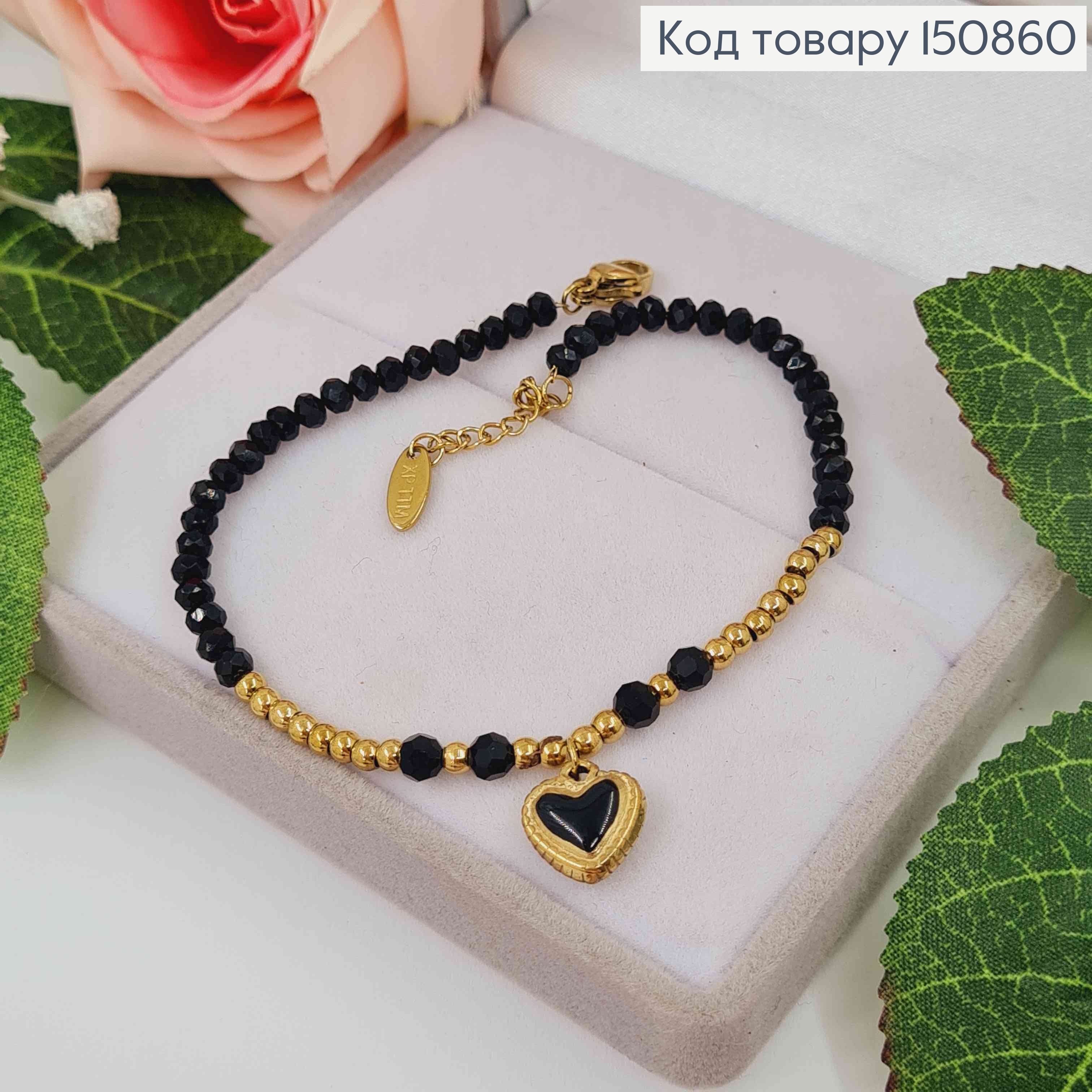 Браслет из черных и лимонных бусинок, с подвеской Сердце, дл.18+3см, Xuping