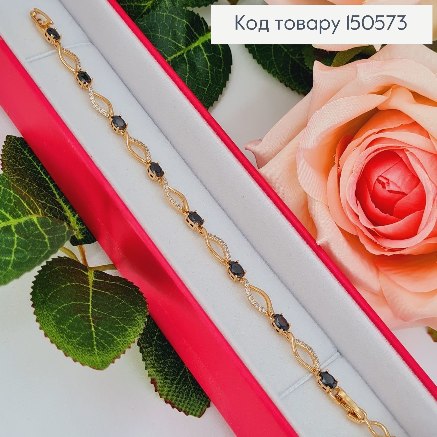 Браслет с черными камнями, длина 17+2см, Xuping 18K