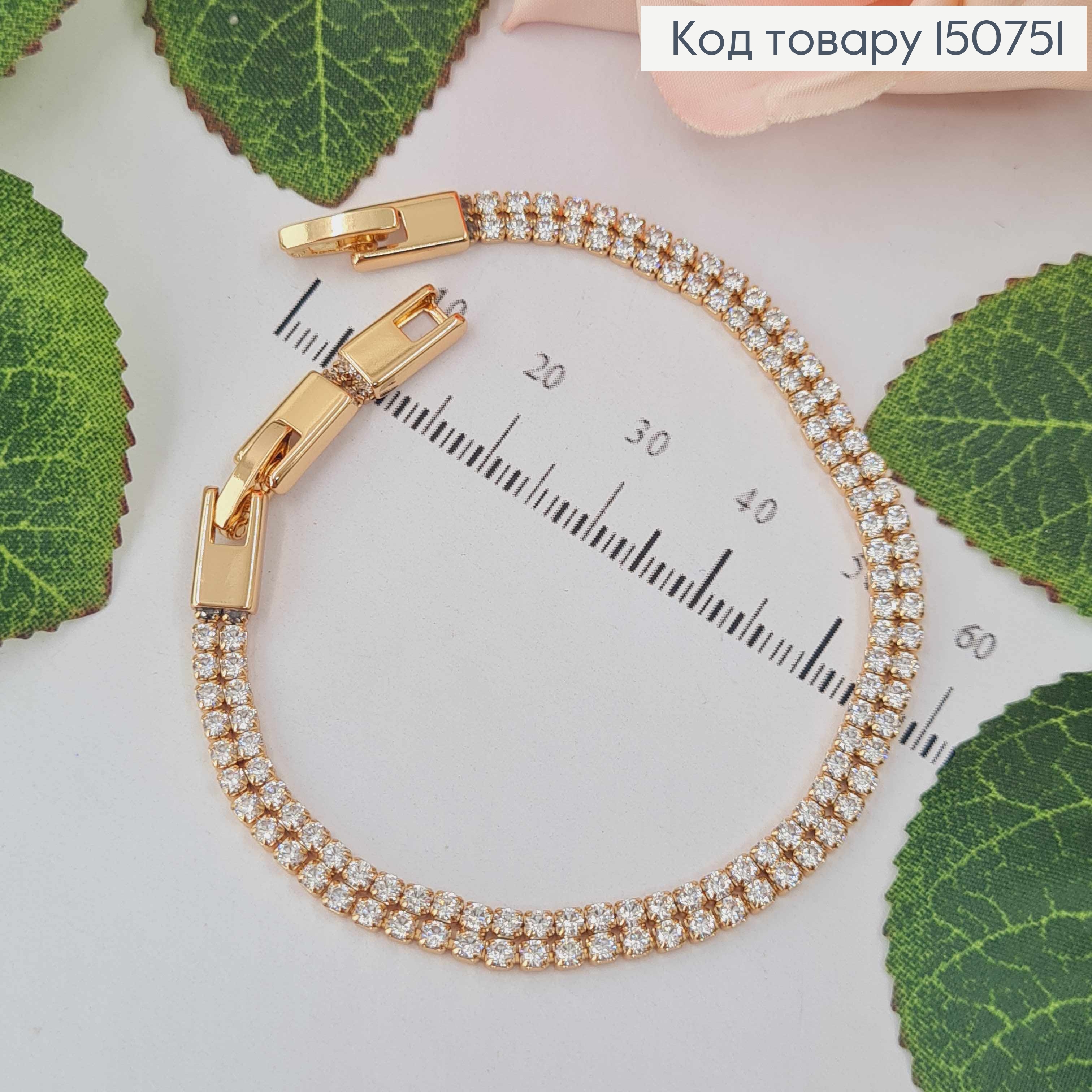 Браслет, с двумя рядами камешков шр. 4мм длиной. 17+2,5см, Xuping 18K