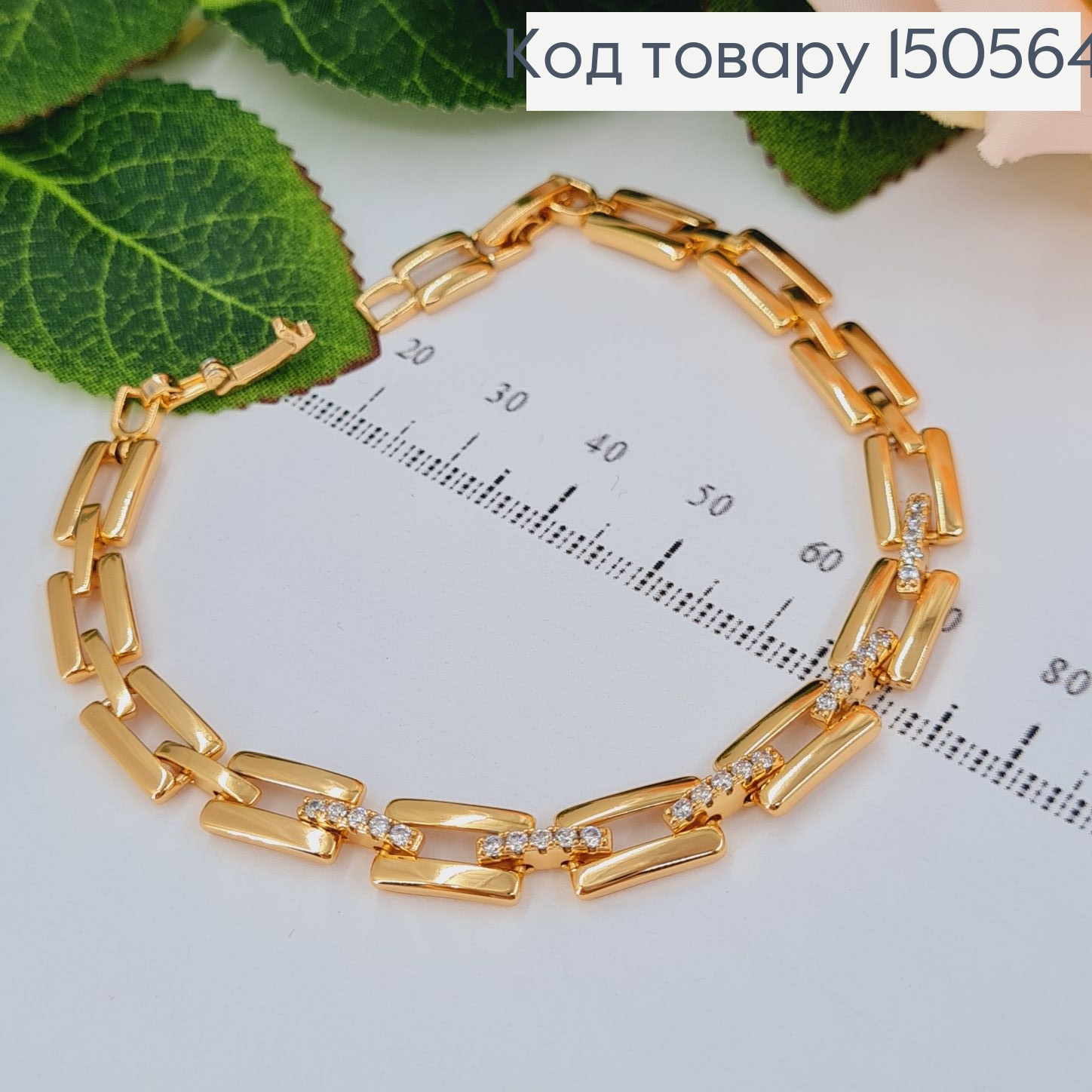 Браслет плетения фигурными пластинками в Блестящих камнях, длина 17+2см, Xuping 18K 151293 фото