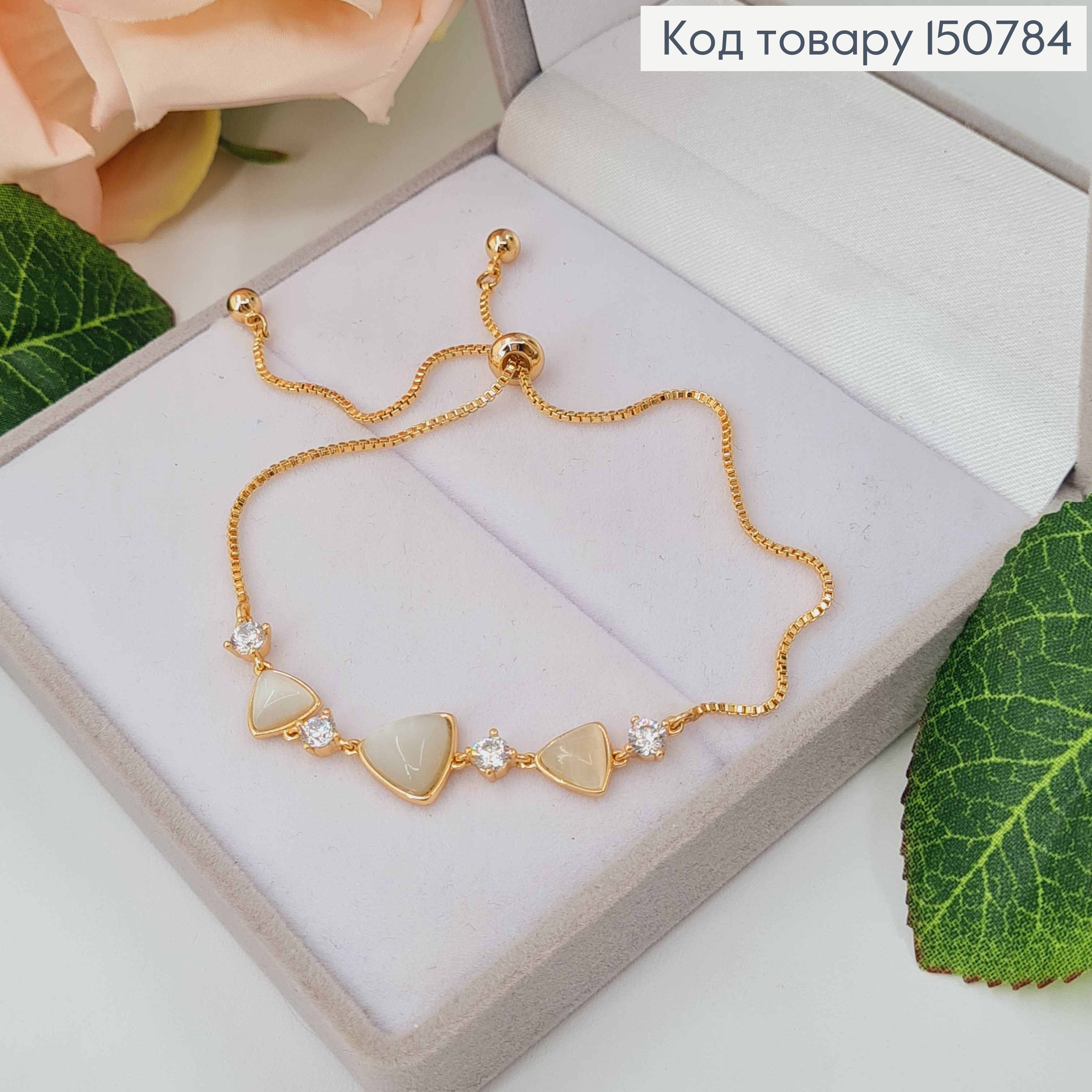 Браслет плетения пластинками "Листья" украшен камешками, длина 17+2см, Xuping 18K 151291 фото