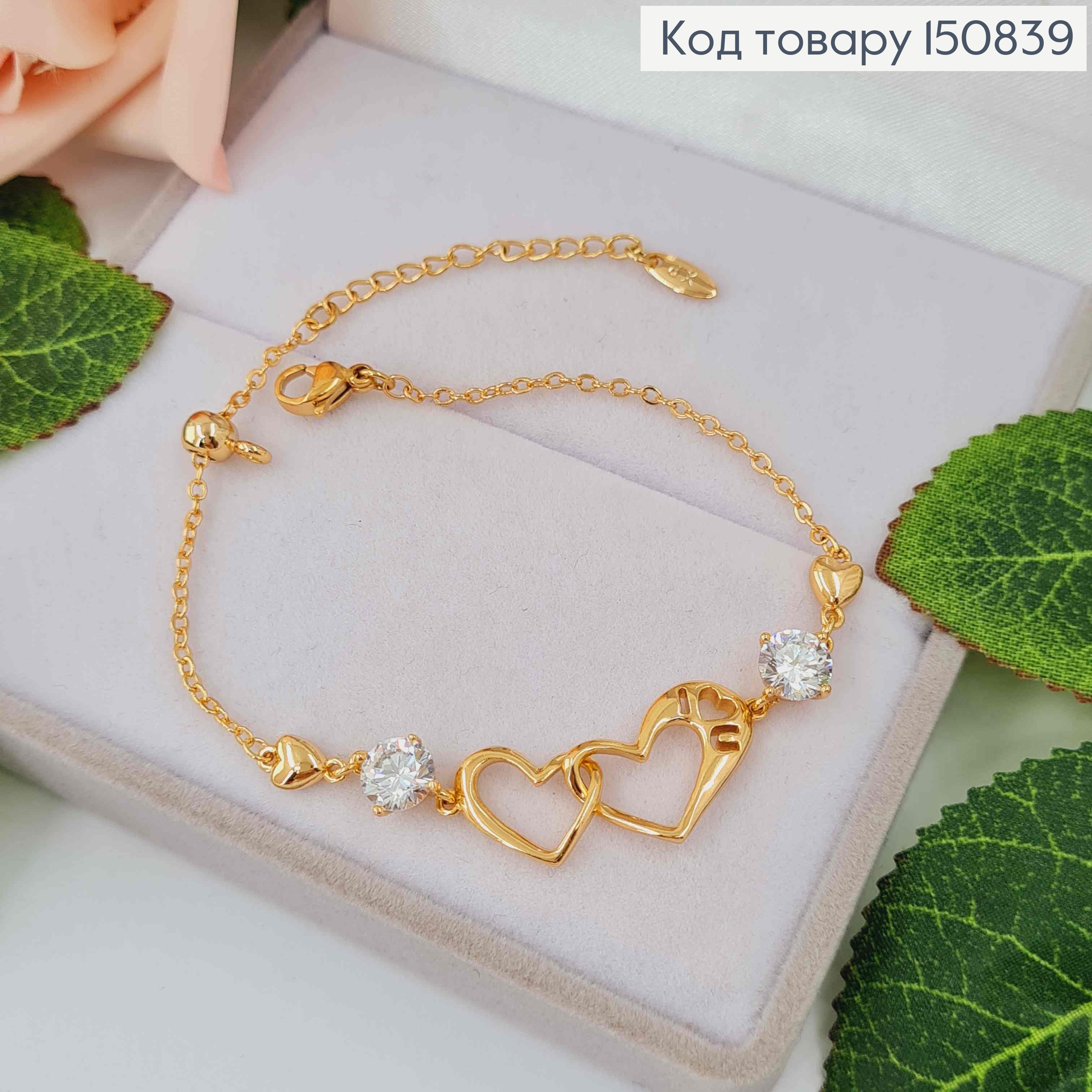 Браслет с Камешками и двумя сердечками, дл. 17+4см, Xuping 18K