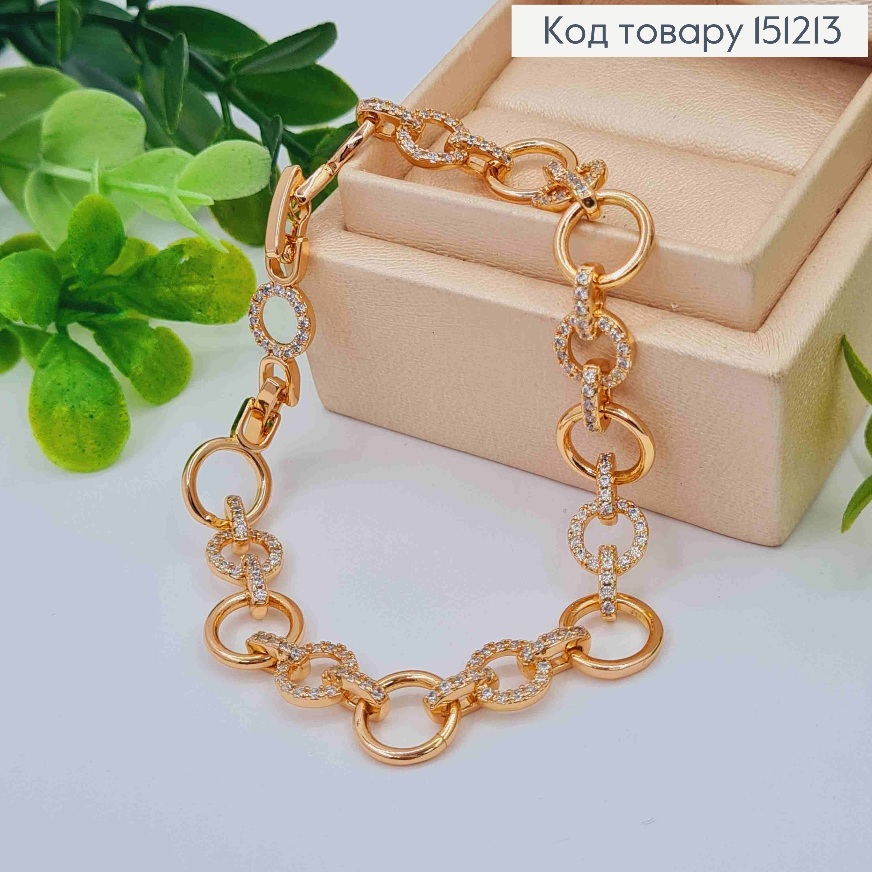 Браслет из овальных пластин украшен блестящими камешками, длина 17+2,5см, Xuping 18К. 151288 фото