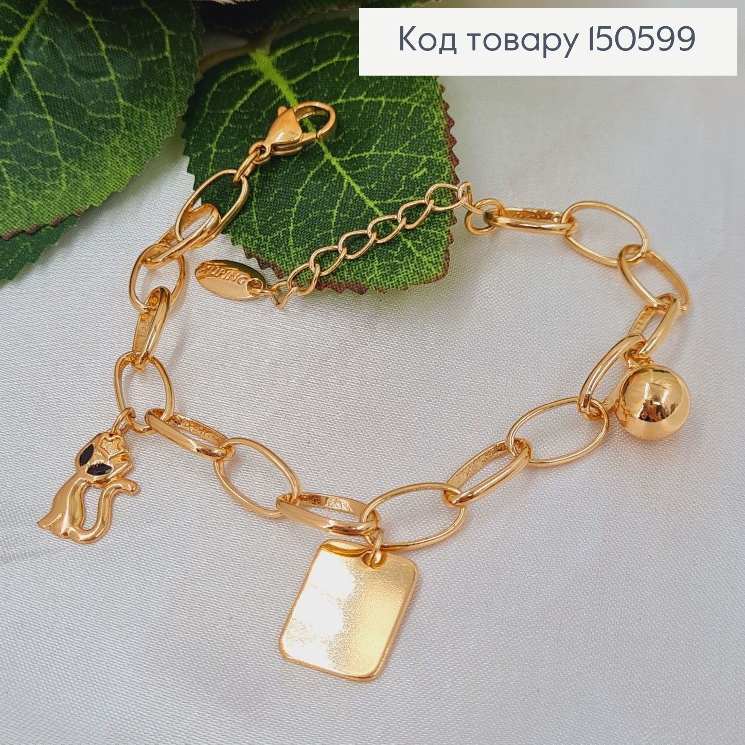 Браслет с котиком и шариком 18+3см, Xuping 18K