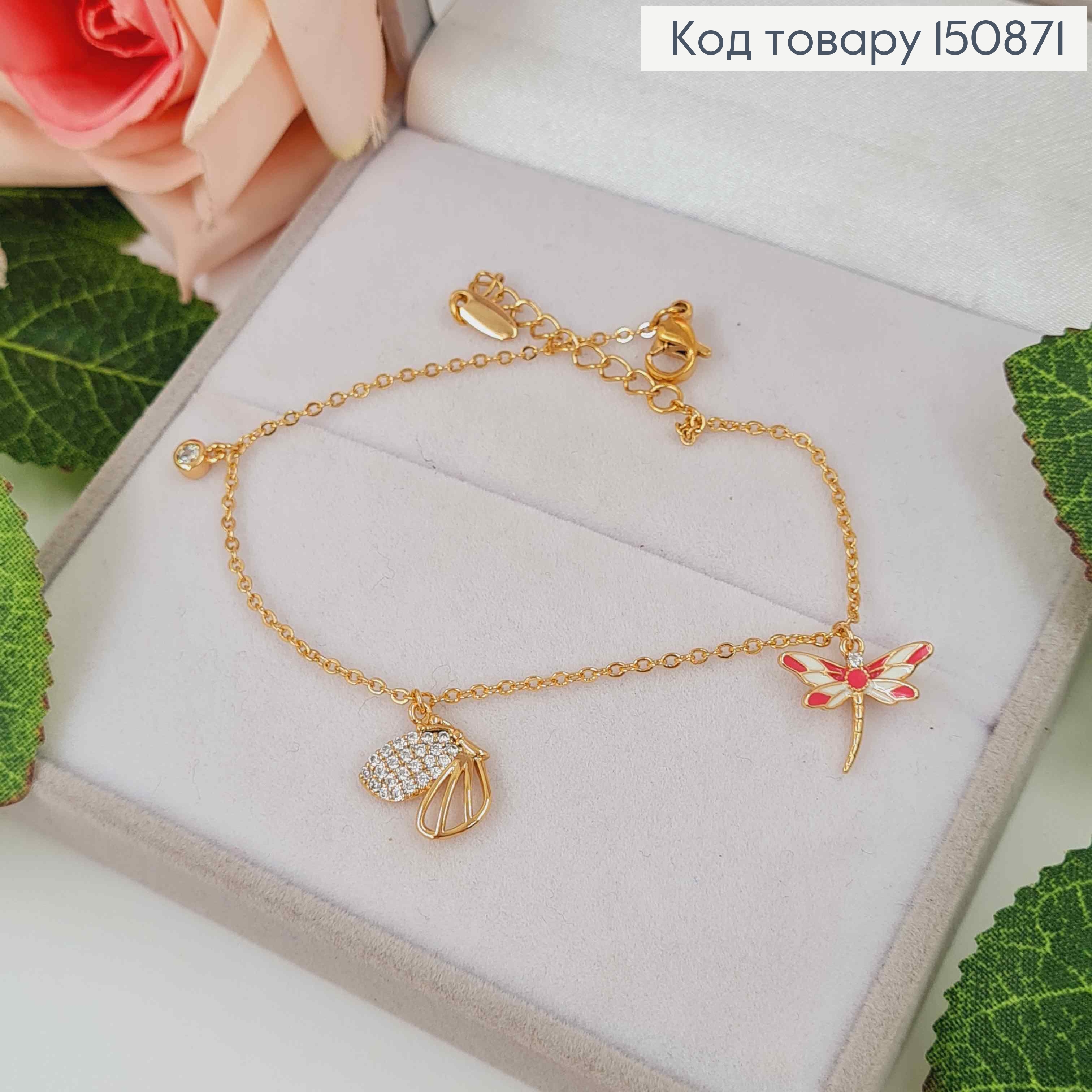 Браслет с бабочкой и красной стрикозой, дл. 17+3см, Xuping 18К
