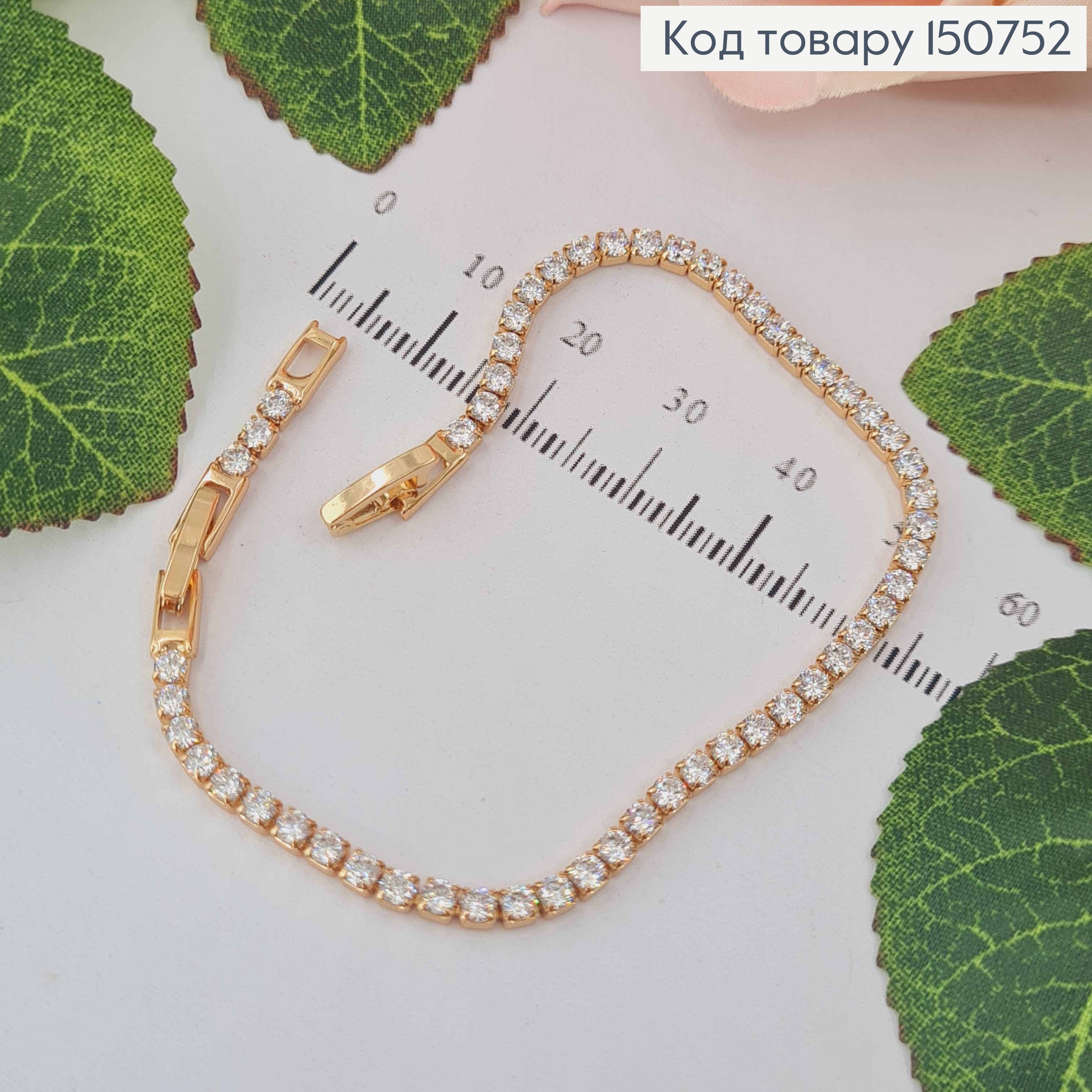 Браслет, с рядочком камешков шир.3мм, дл. 17+2,5см, Xuping 18K