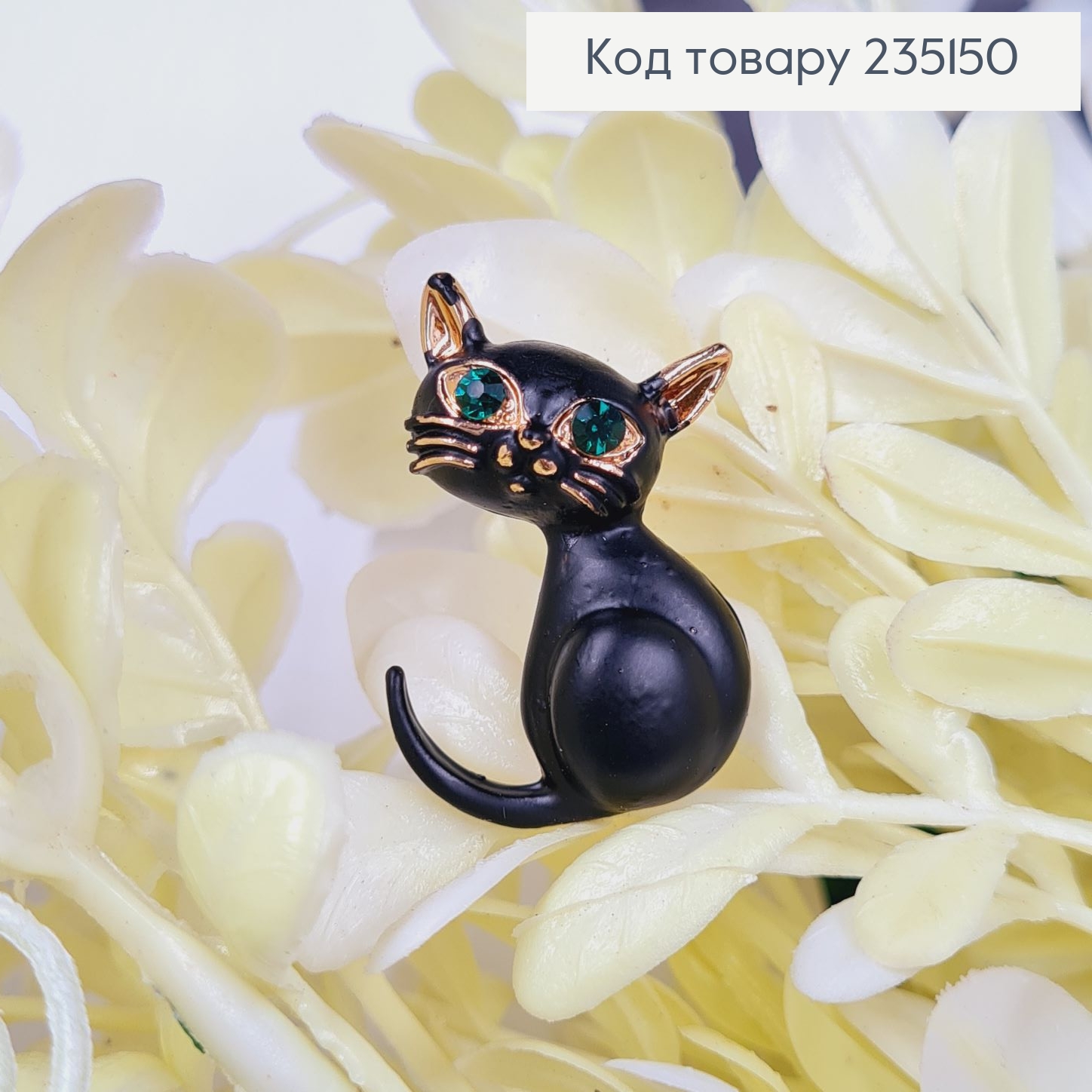 Брошка "Чёрная кошка" с зелёными камушками 2*2.5 см.