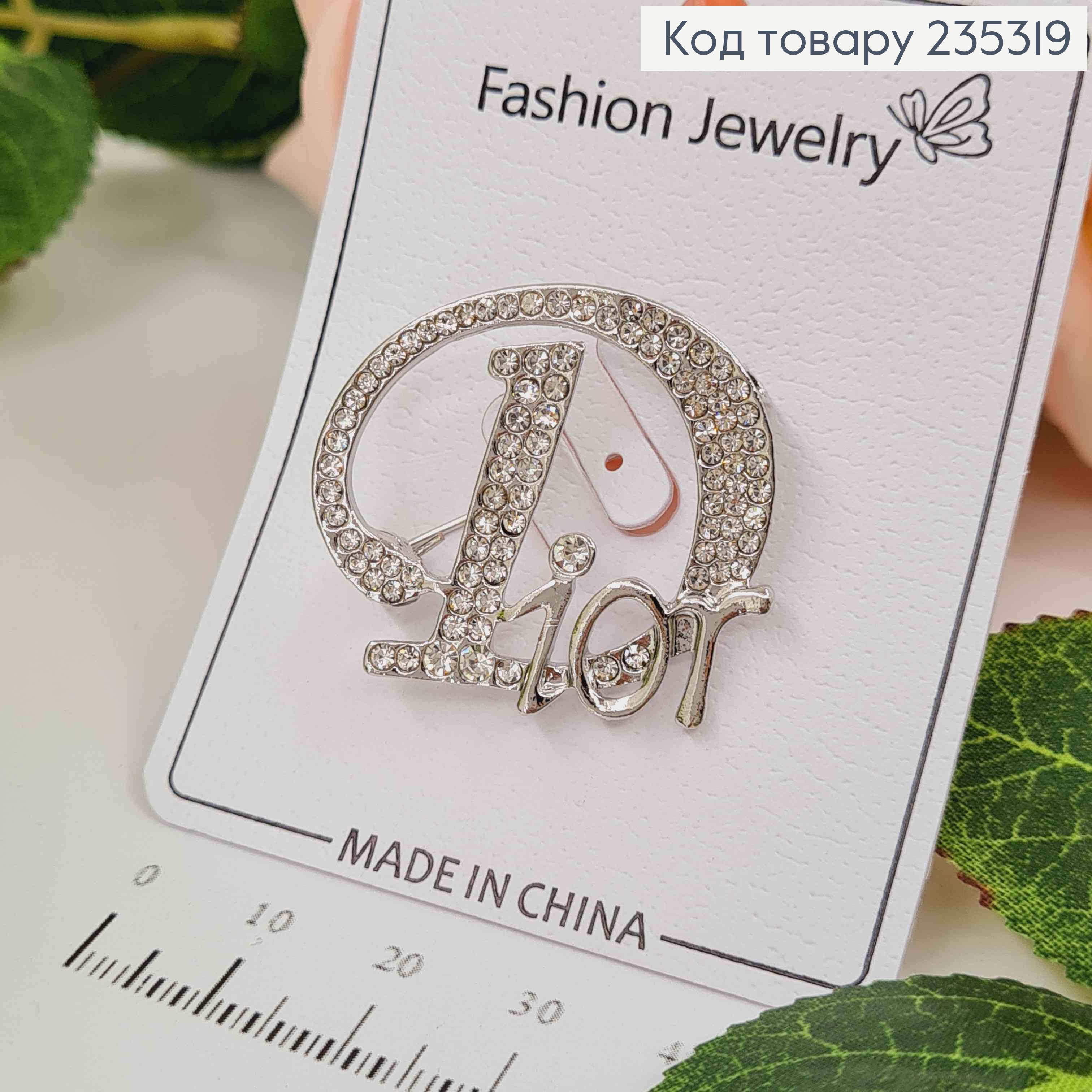 Брошь "Dior" в камешках Серебряного цвета 3*3см