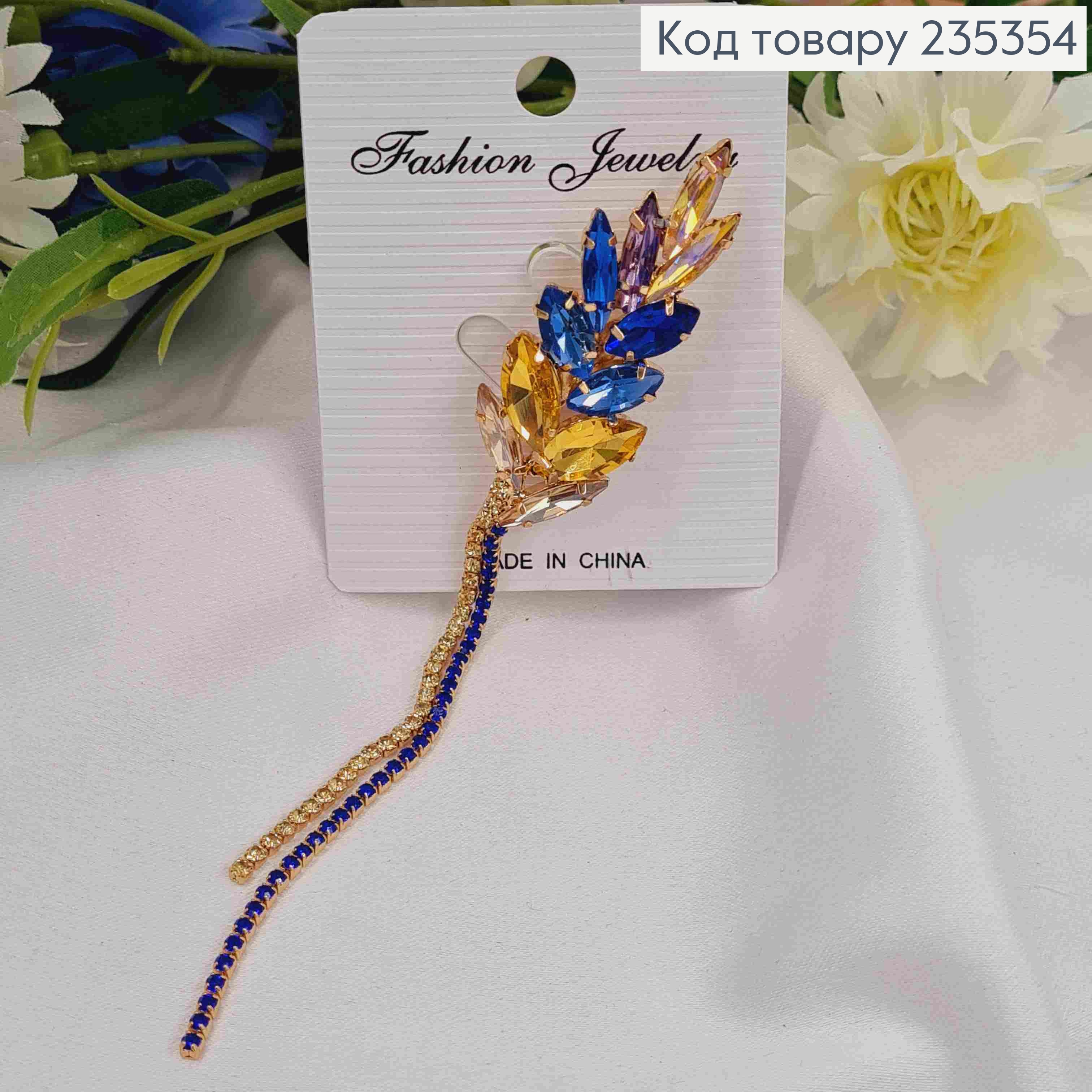 Брошь КОЛОСОК (5,5см)ЖЕЛТО-СИНИЙ, в камнях с тремя цепочками в камнях (9,5см) 235425 фото
