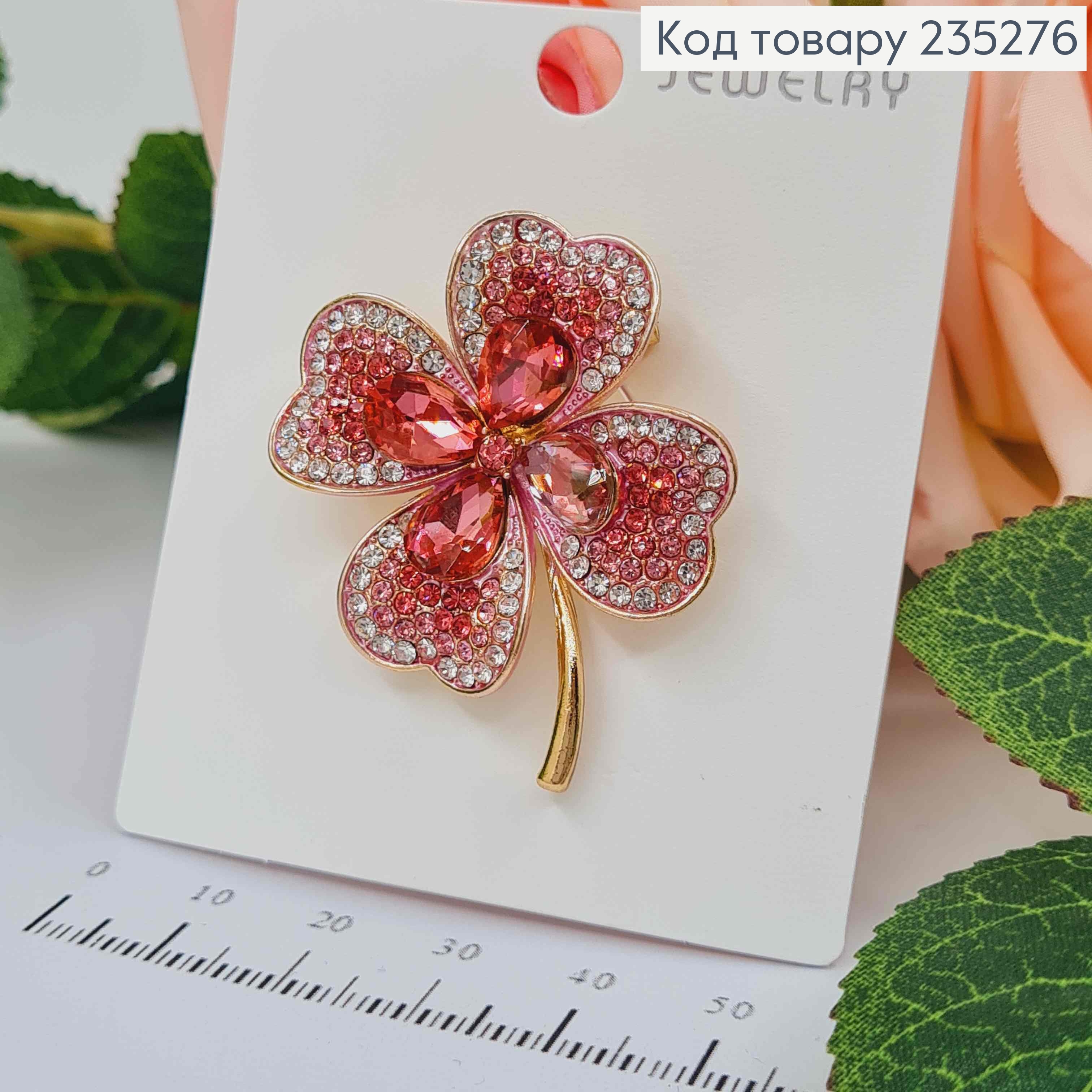 Брошь Клевер с камешками РОЗОВОГО цвета 3*4см