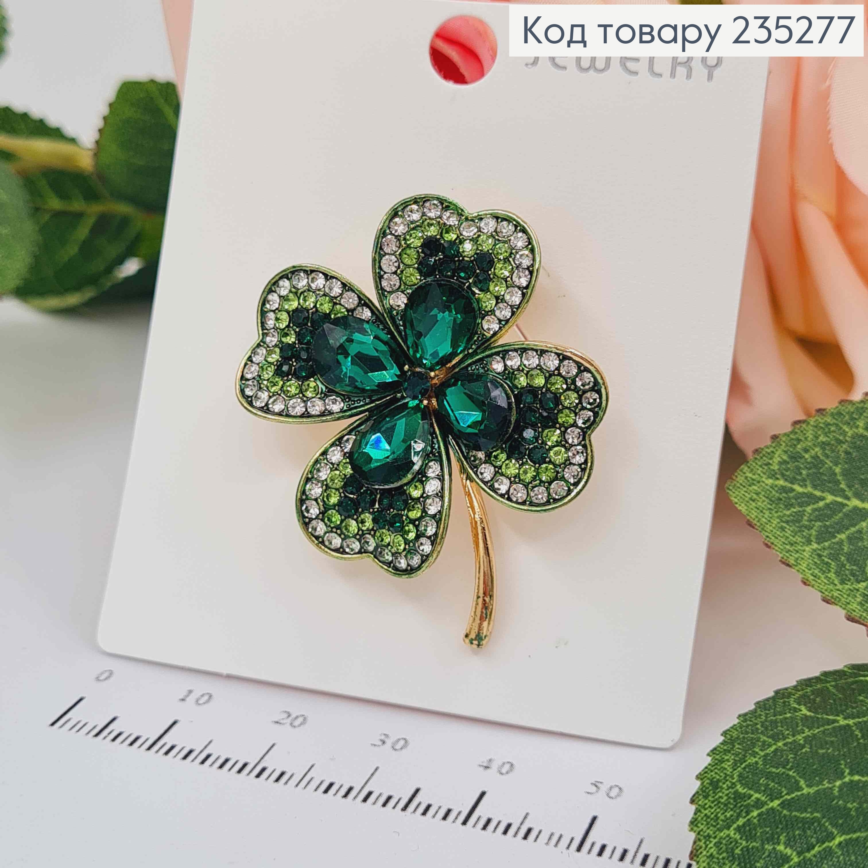 Брошь Клеверс камешками ЗЕЛЕНОГО цвета 3*4см
