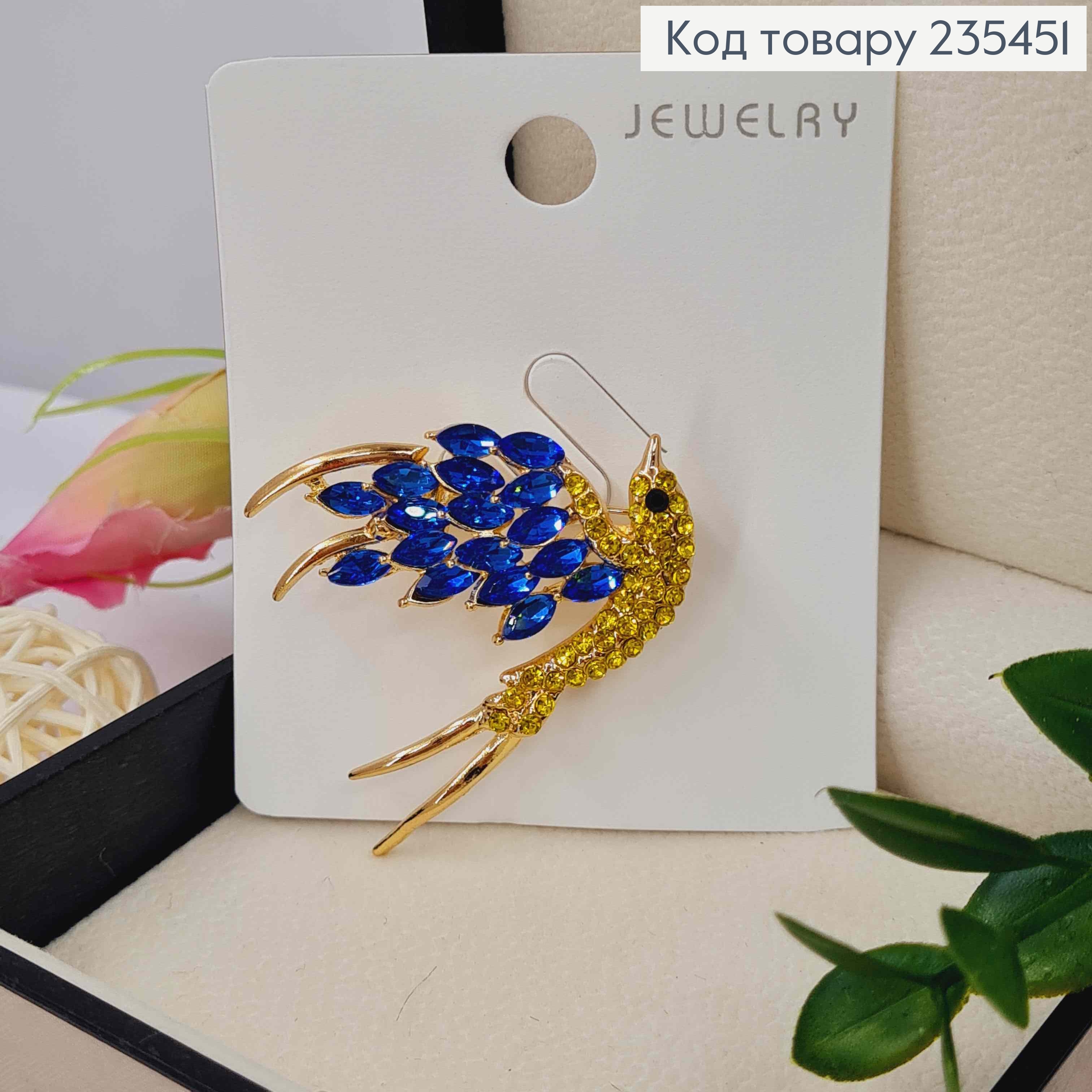 Брошь ЛАСТОЧКА украшена желто-синими камешками, 3*4см, золотого цвета.