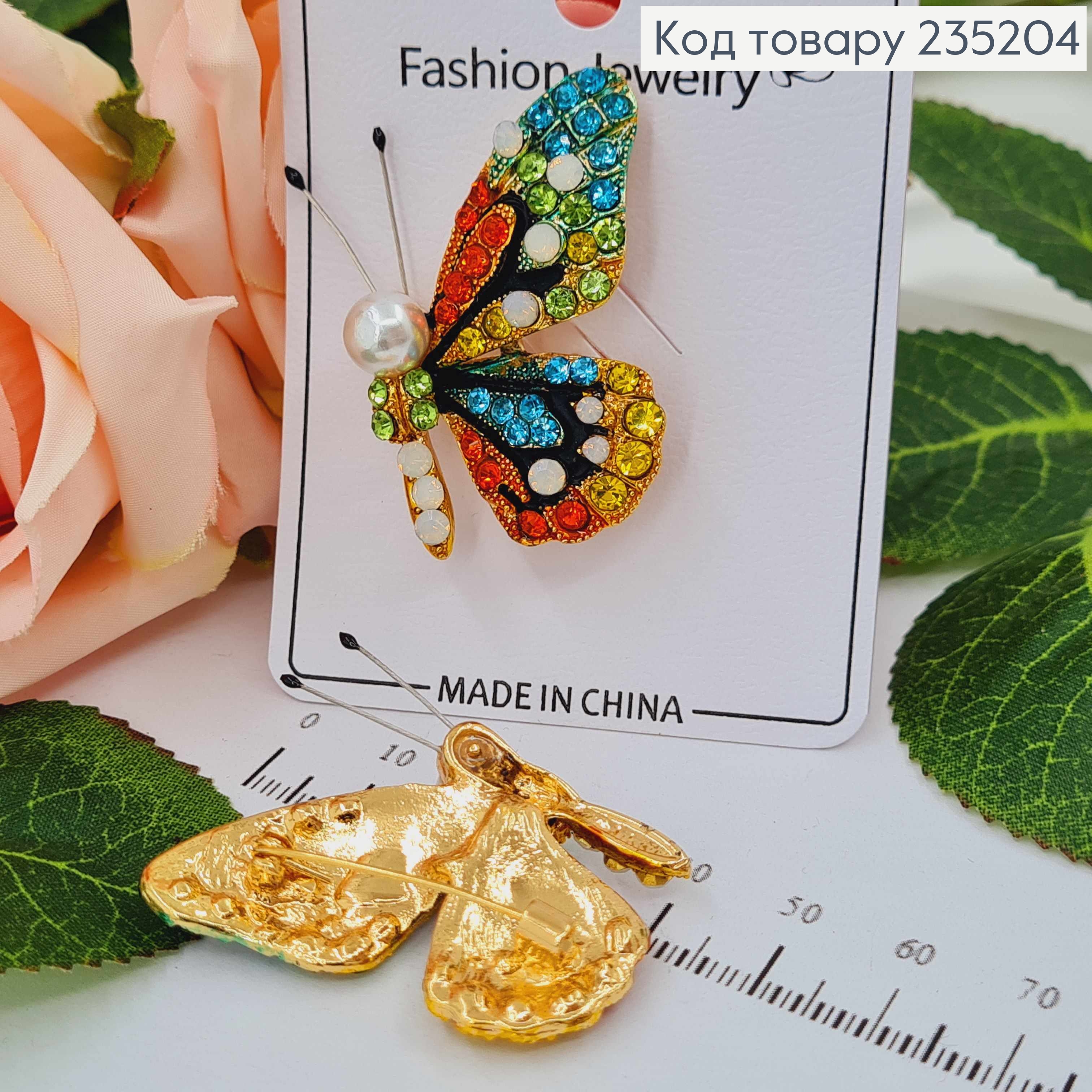 Брошь металл "СТРЕКОЗА" украшена Блестящими камешками и Перламутровой, 5,5*4см, Золотого цвета 235524 фото