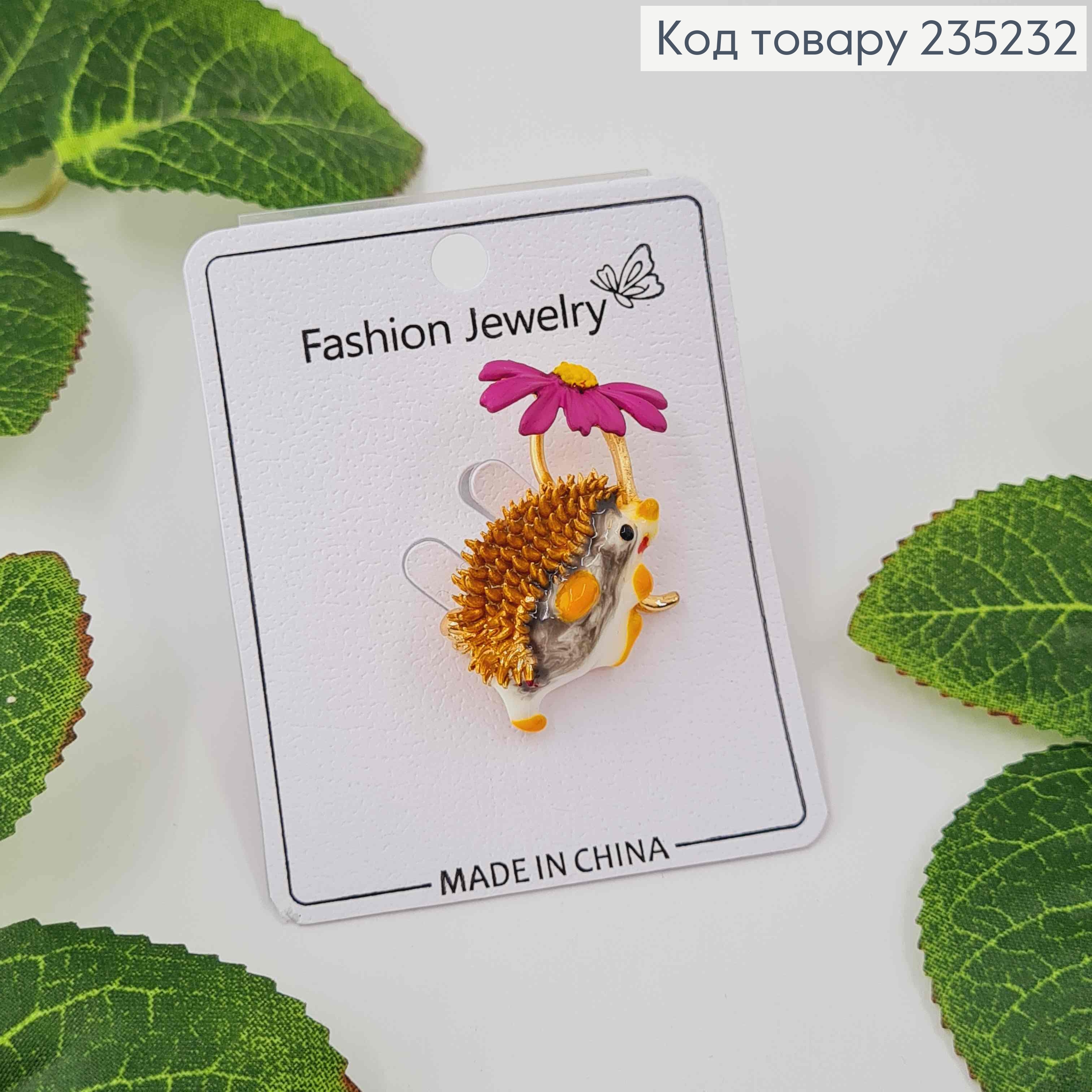 Брошь металл, "Ежик с фиолетовой ромашкой", 4см