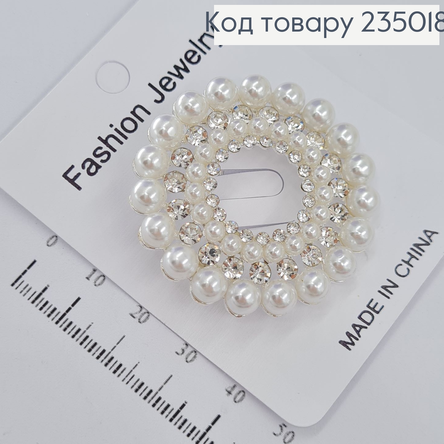 Кольцо-держатель, зажим для платка, "РОМБИКИ" с камешками и жемчужиной, размер 3*2см диам.2см 235532 фото