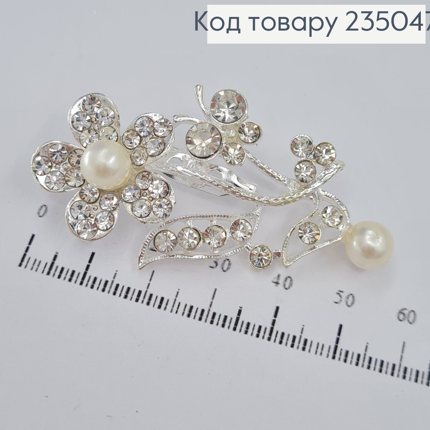 Брошь металл Цветок серебряный с камнями