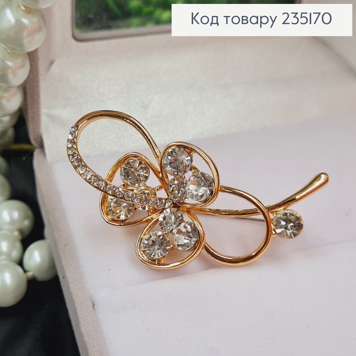 Брошь металл "СТРЕКОЗА" украшена Блестящими камешками и Перламутровой, 5,5*4см, Золотого цвета 235524 фото