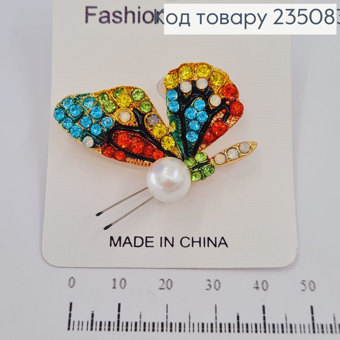 Брошь металл Бабочка с цветгими камнями