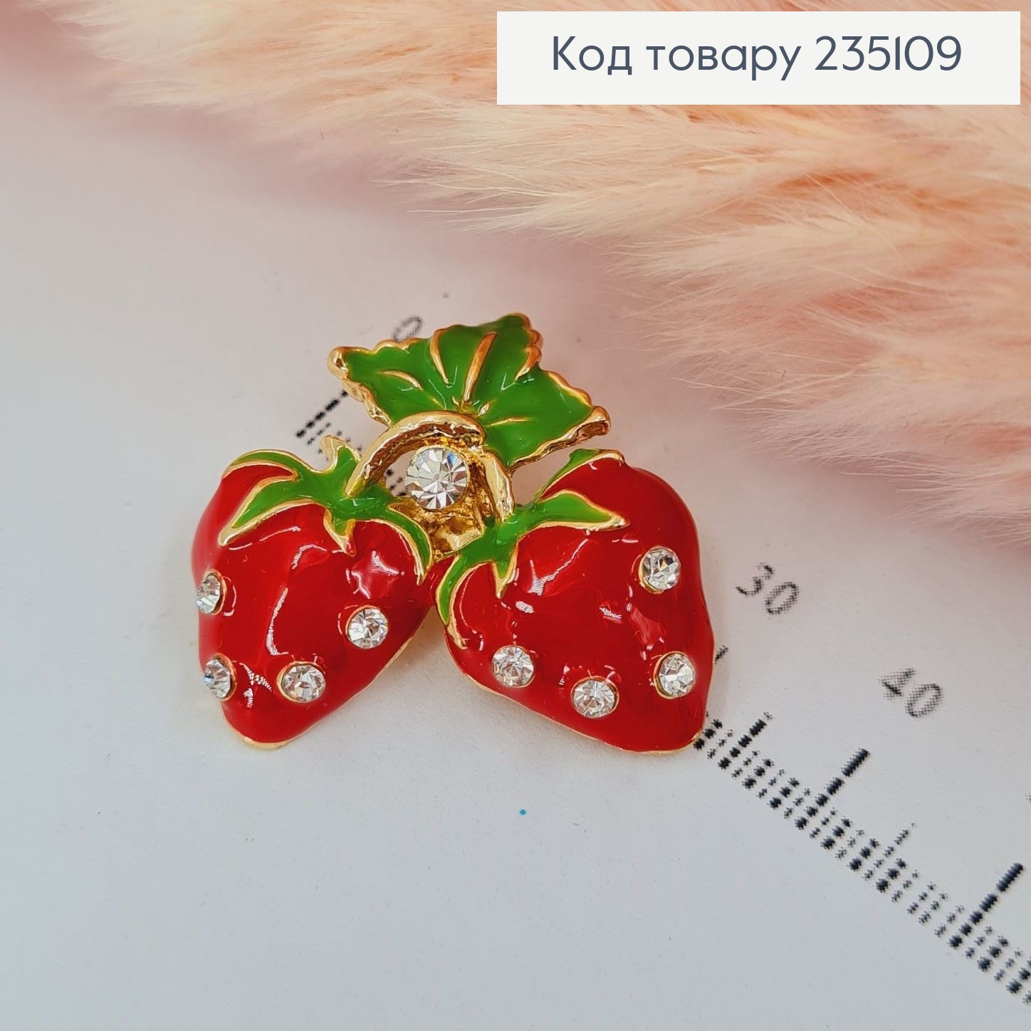Брошь металл "Вишенки-Черешеньки" украшена камешками, 4*3см, Серебряного цвета. 235522 фото