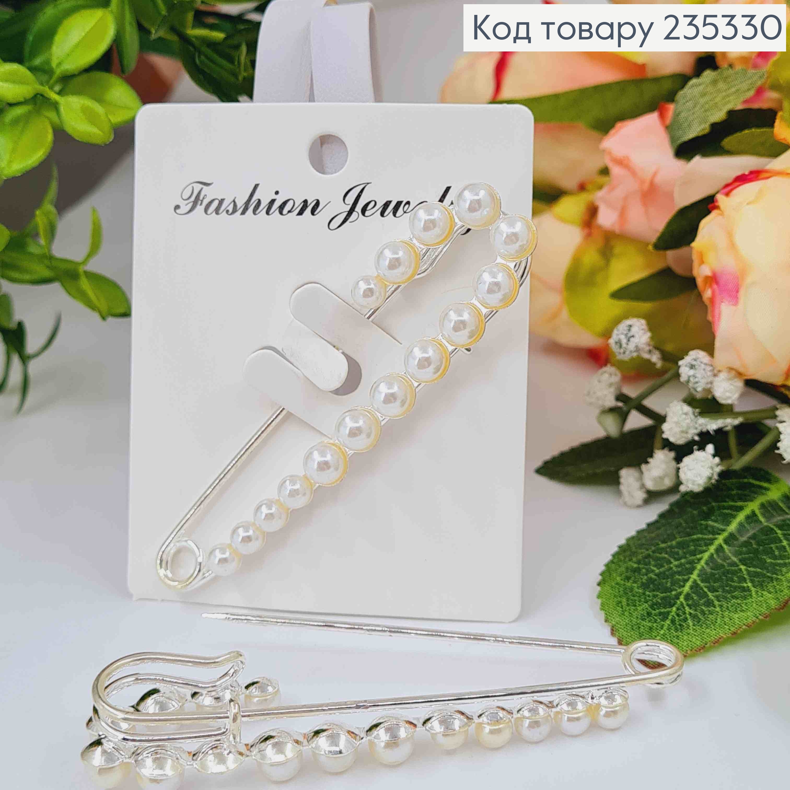 Брошь металл, Булавка серебряного цвета, в жемчужинах 7,5см